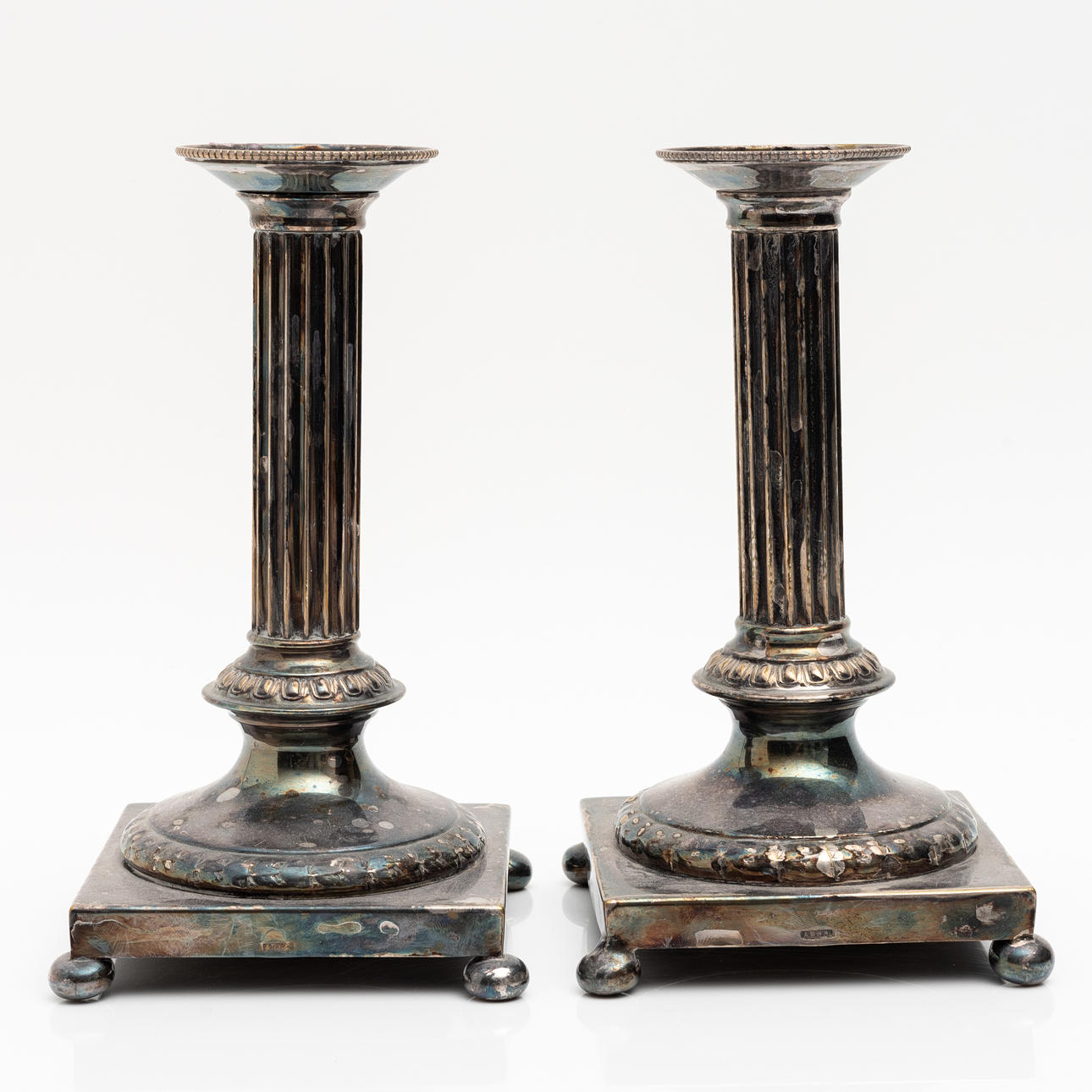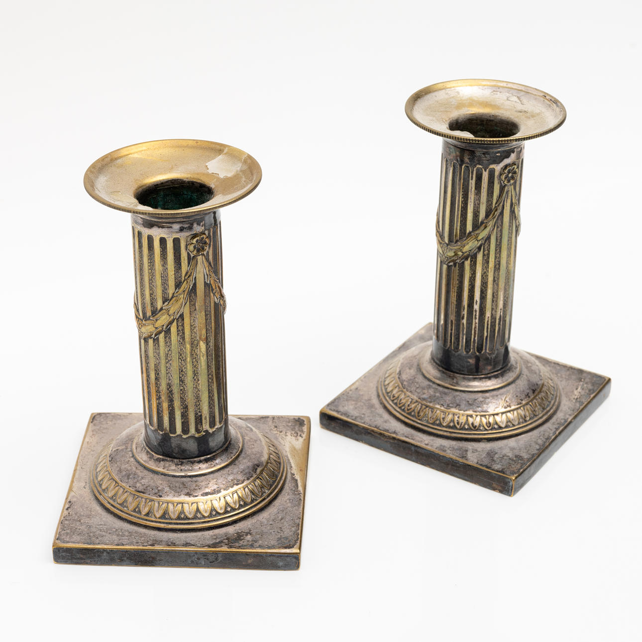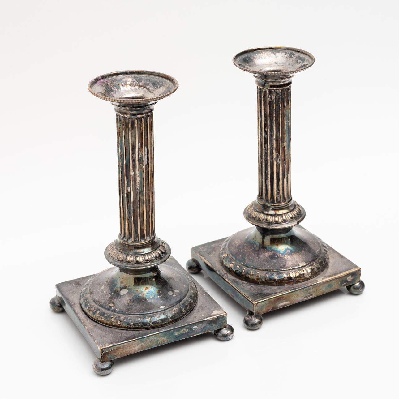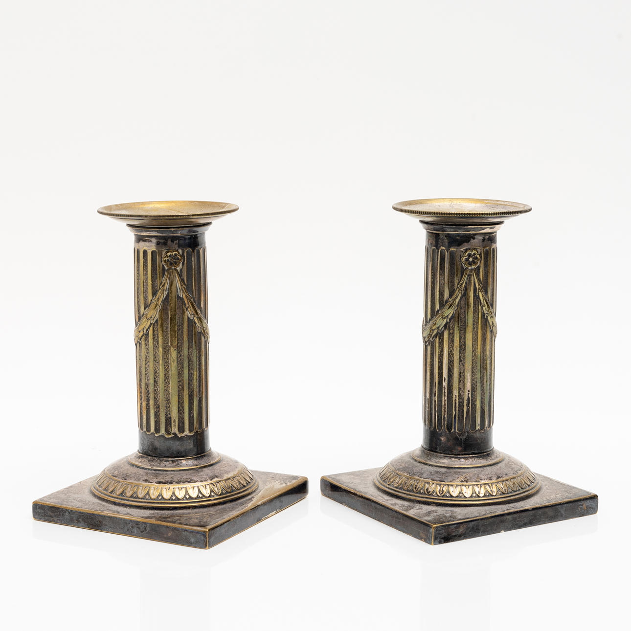 4359536. A pair of two column candlesticks, nickel silver, circa 1900.