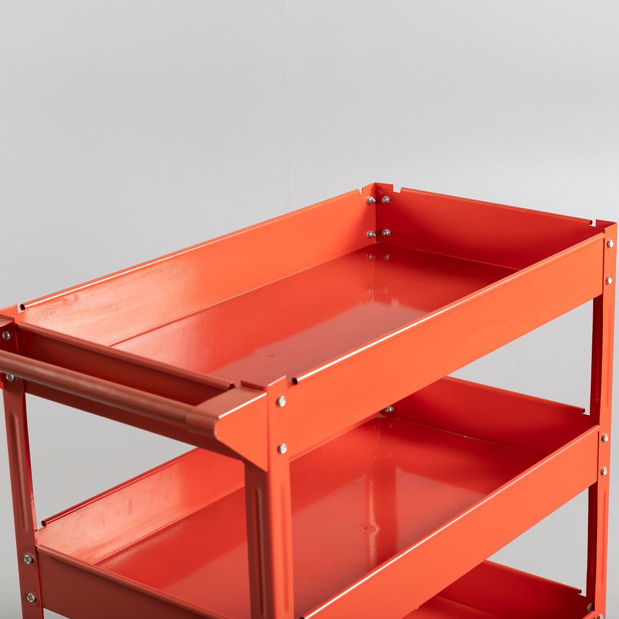 4359617. WORKSHOP TROLLEY, red lacquered sheet, contemporary.