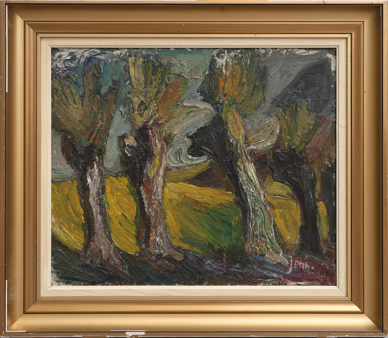 GUNNAR JONN. OIL ON PANEL, FOREST MOTIF, SIGNED.