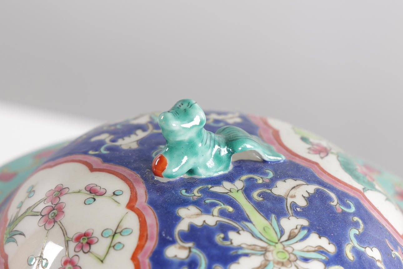 Height without lid: approx. 16 cm. Height with lid: approx. 23 cm. Stamped at the bottom.