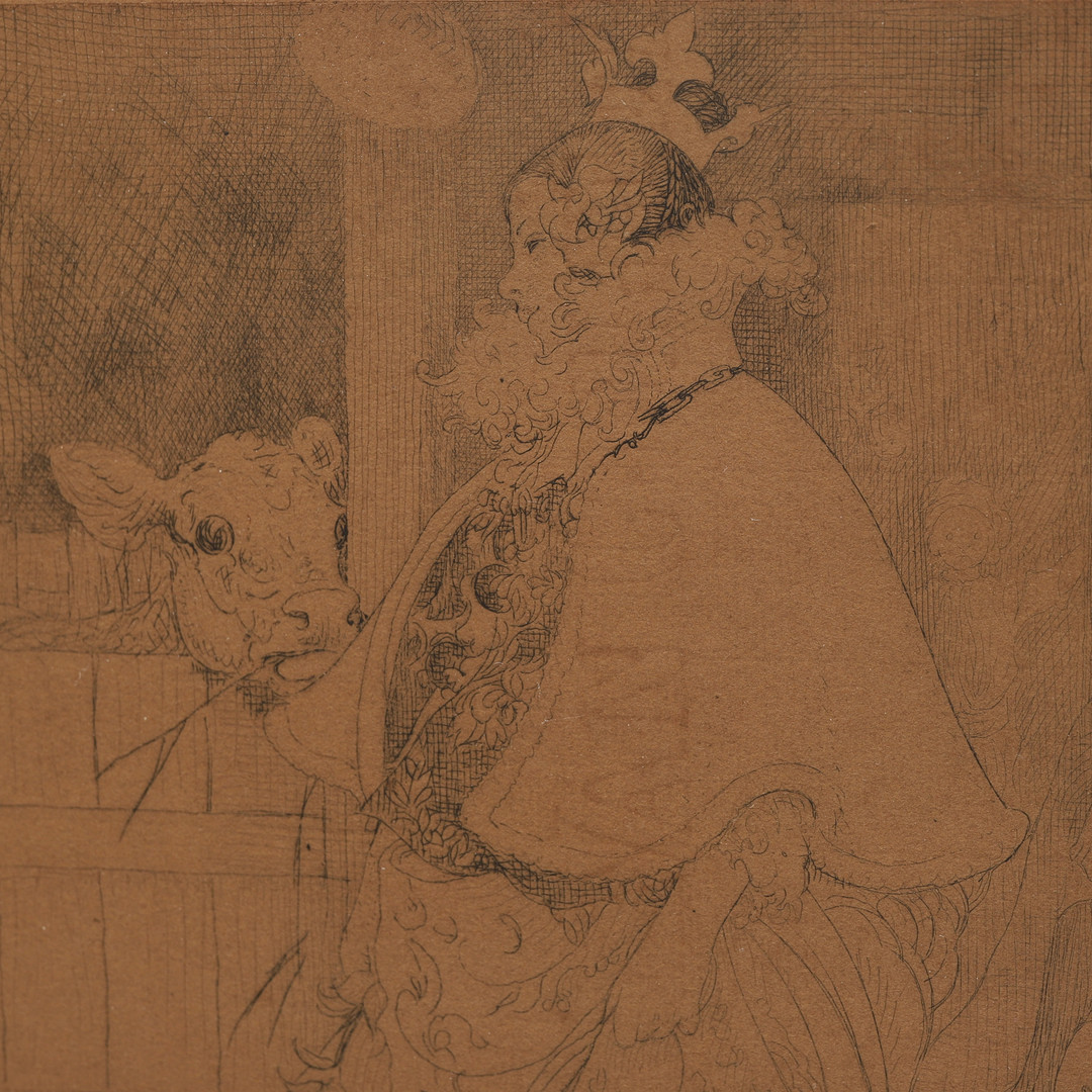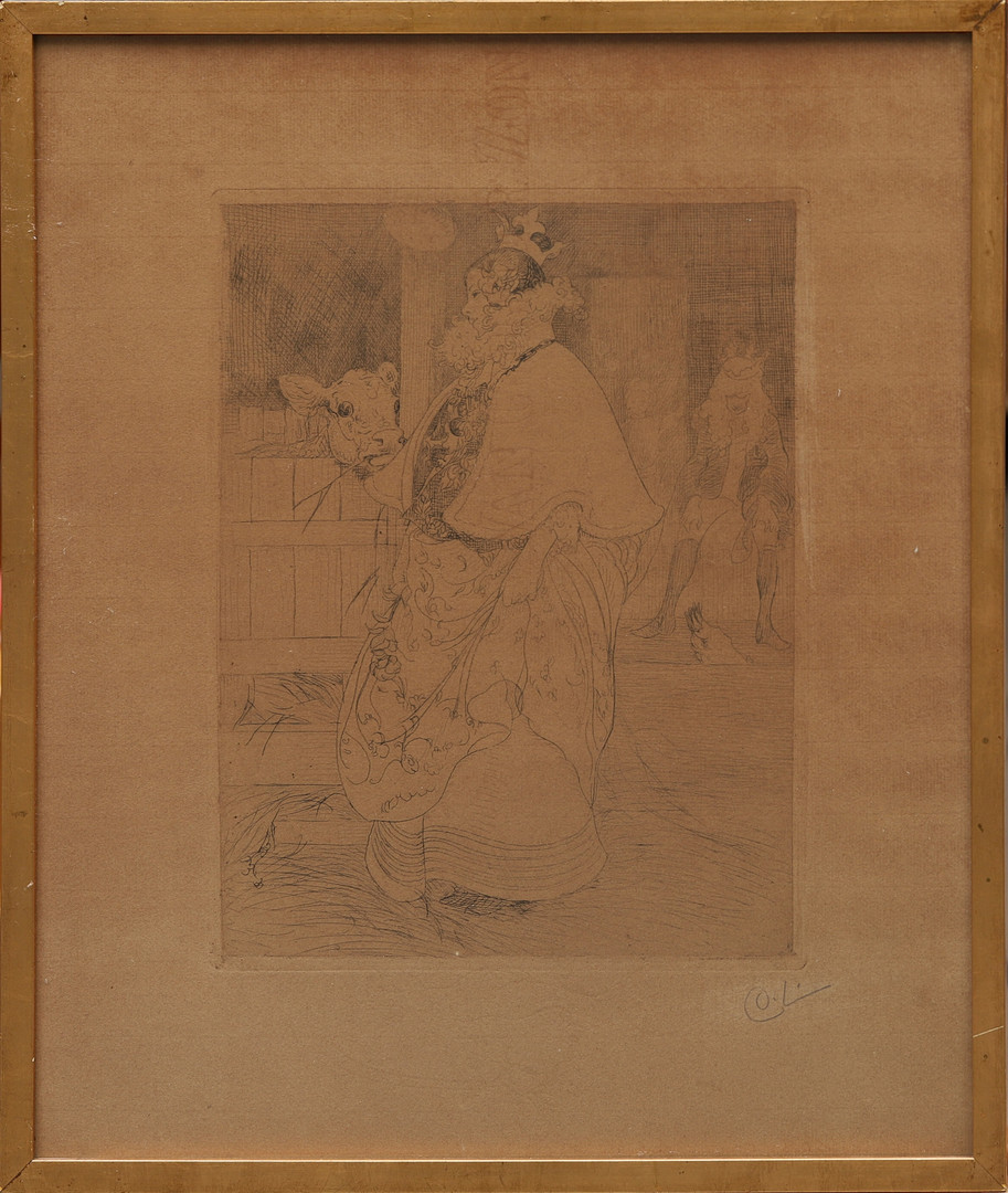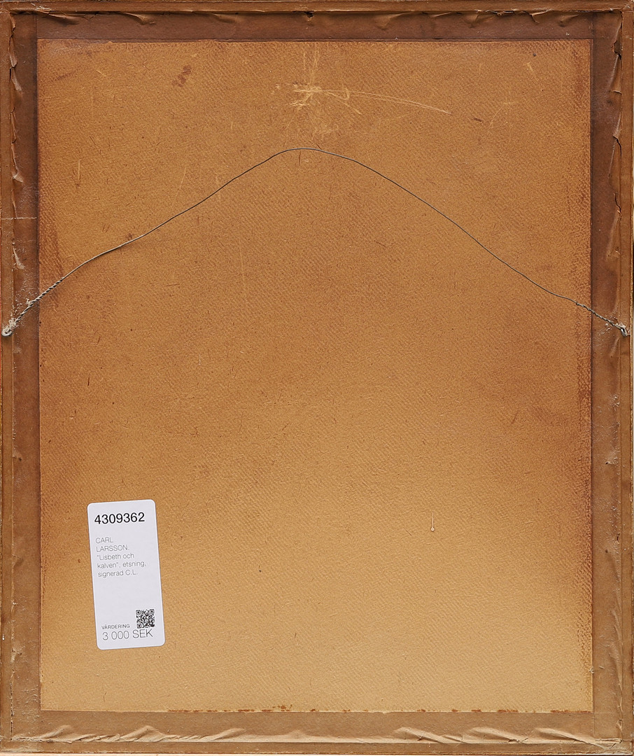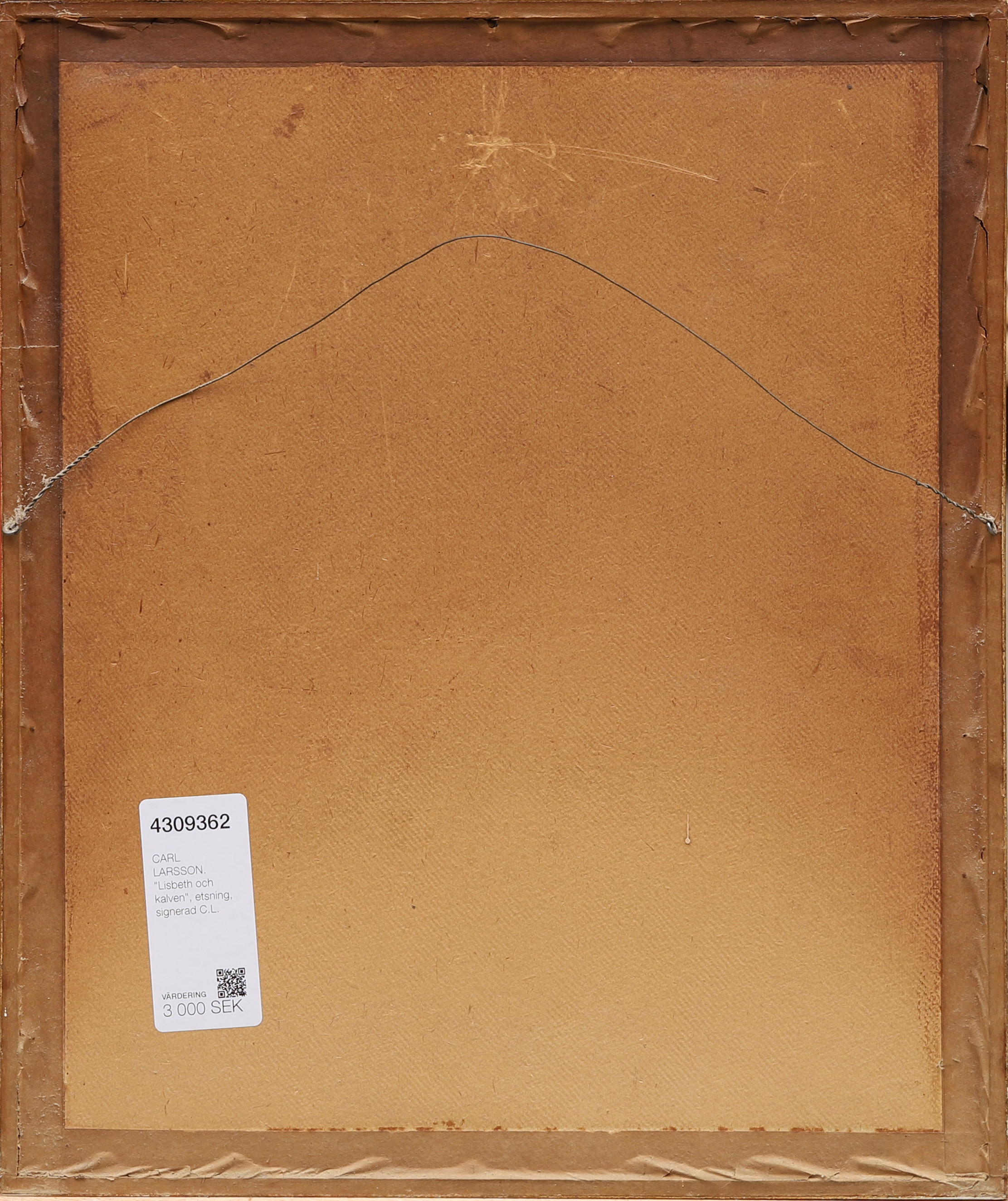 4360160. CARL LARSSON. “Lisbeth and the Calf”, etching, signed C.L.