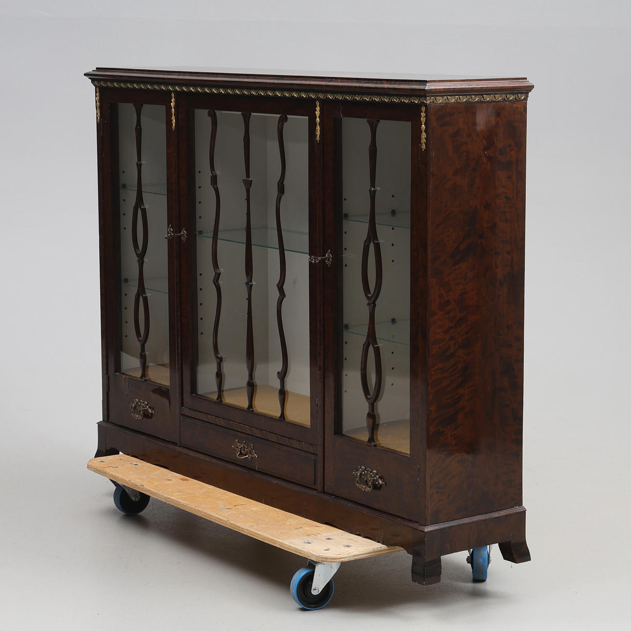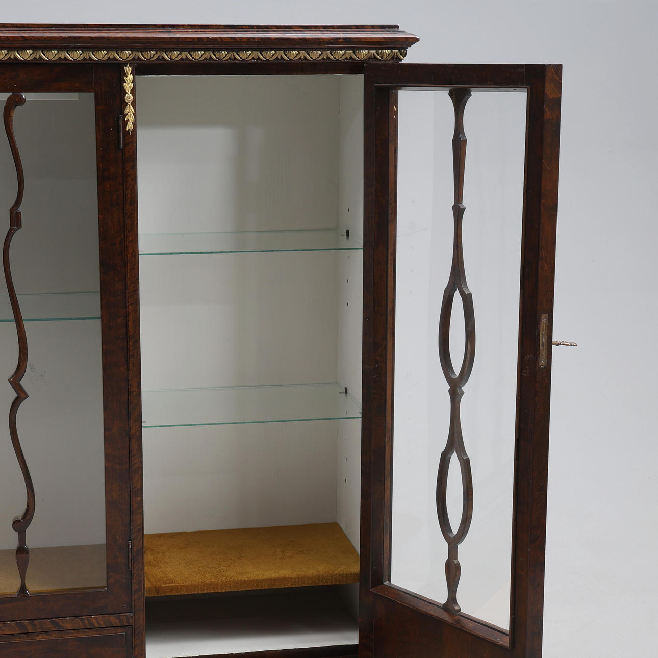 The glass shelves are not original (not suitable for books) Most likely retrofitted fittings on one short side.