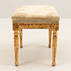 Cannellated and leaf-shrouded legs, cut ovule and fleurons. Solid and upholstered upholstery.