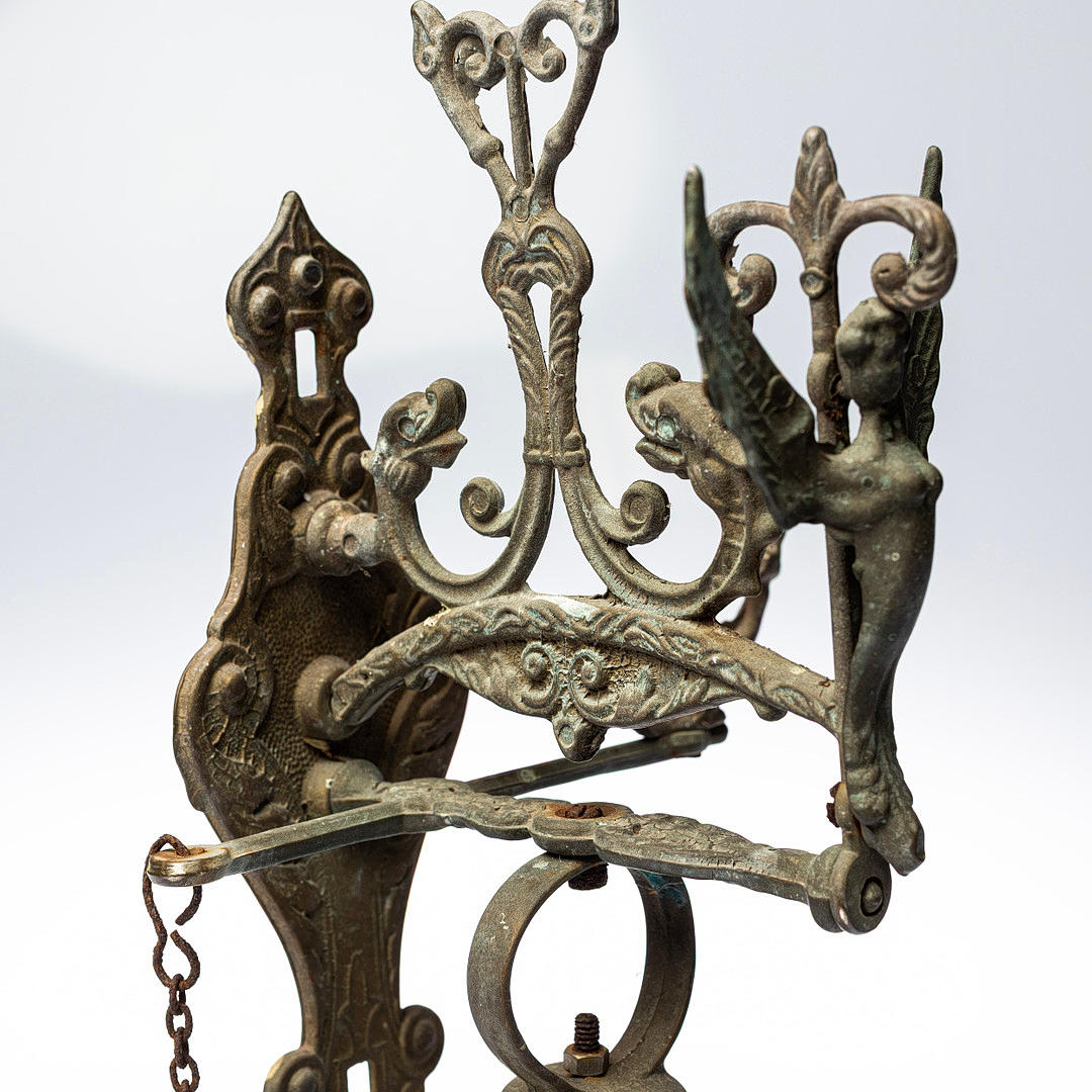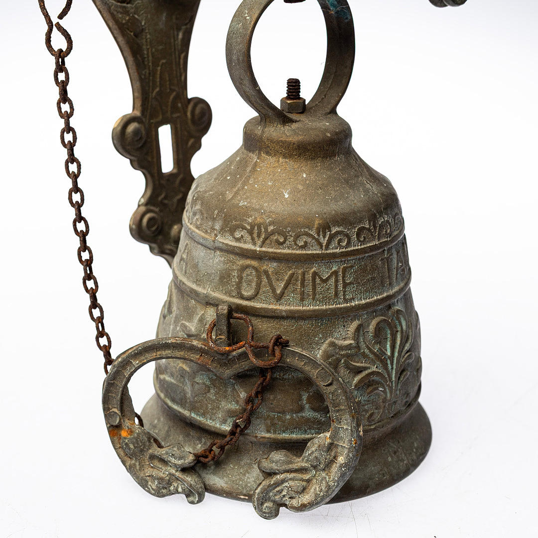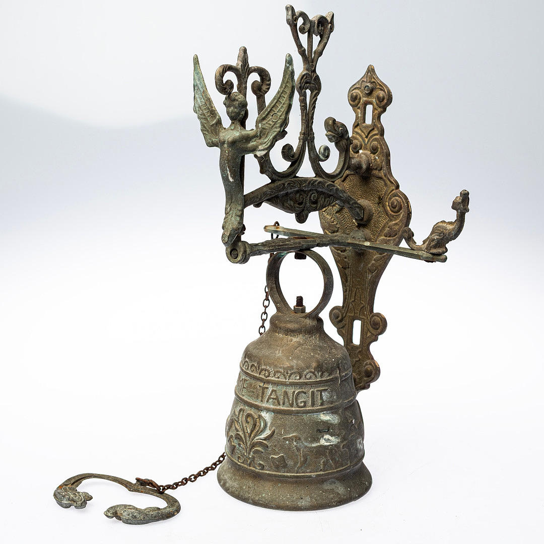 WICKER BELL, cast metal, richly decorated.