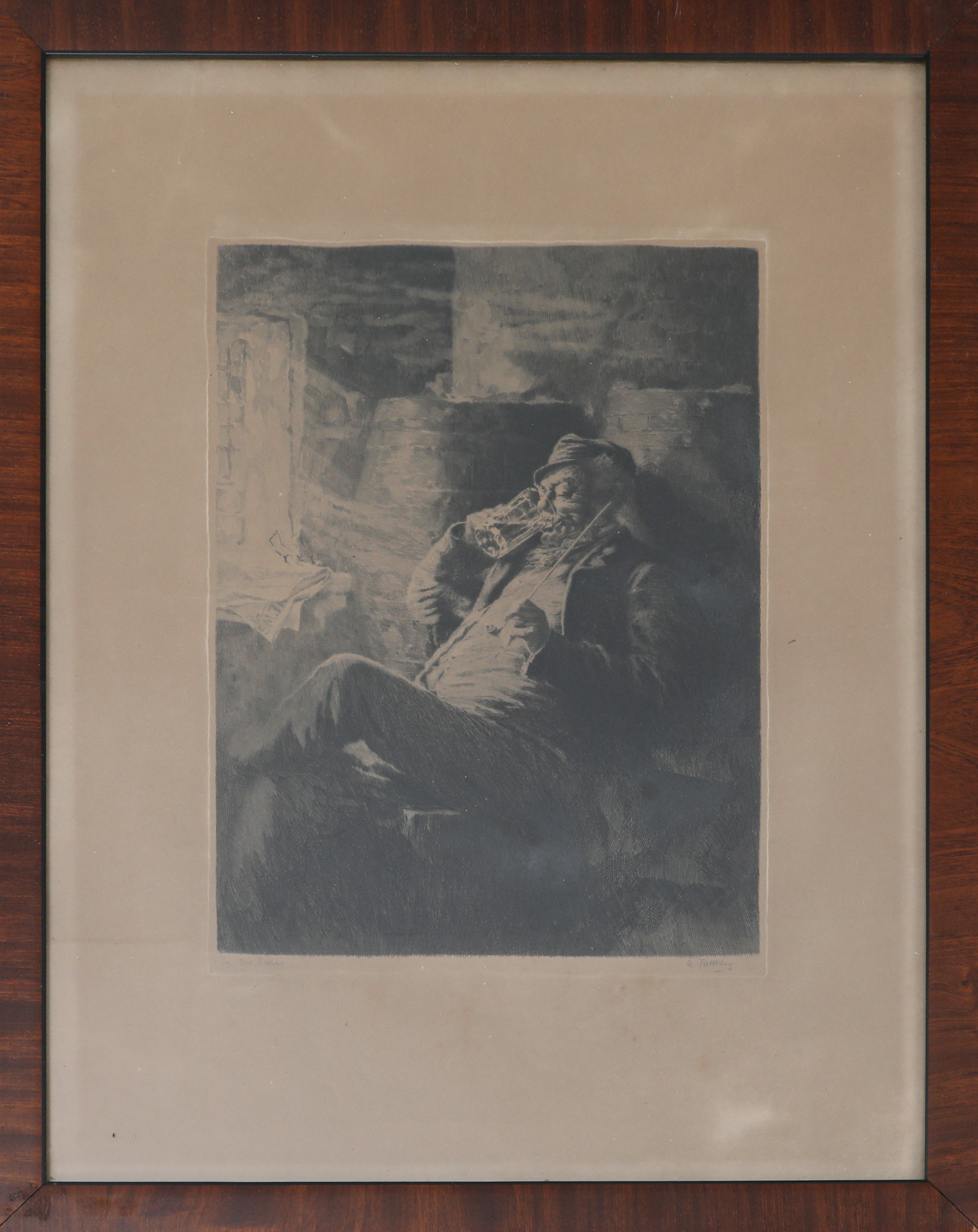 4360403. AXEL TALLBERG. etching, signed, “the beer drinker”.