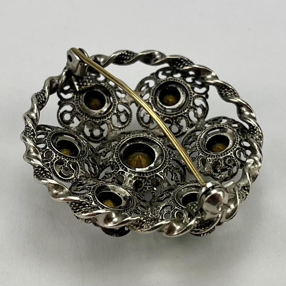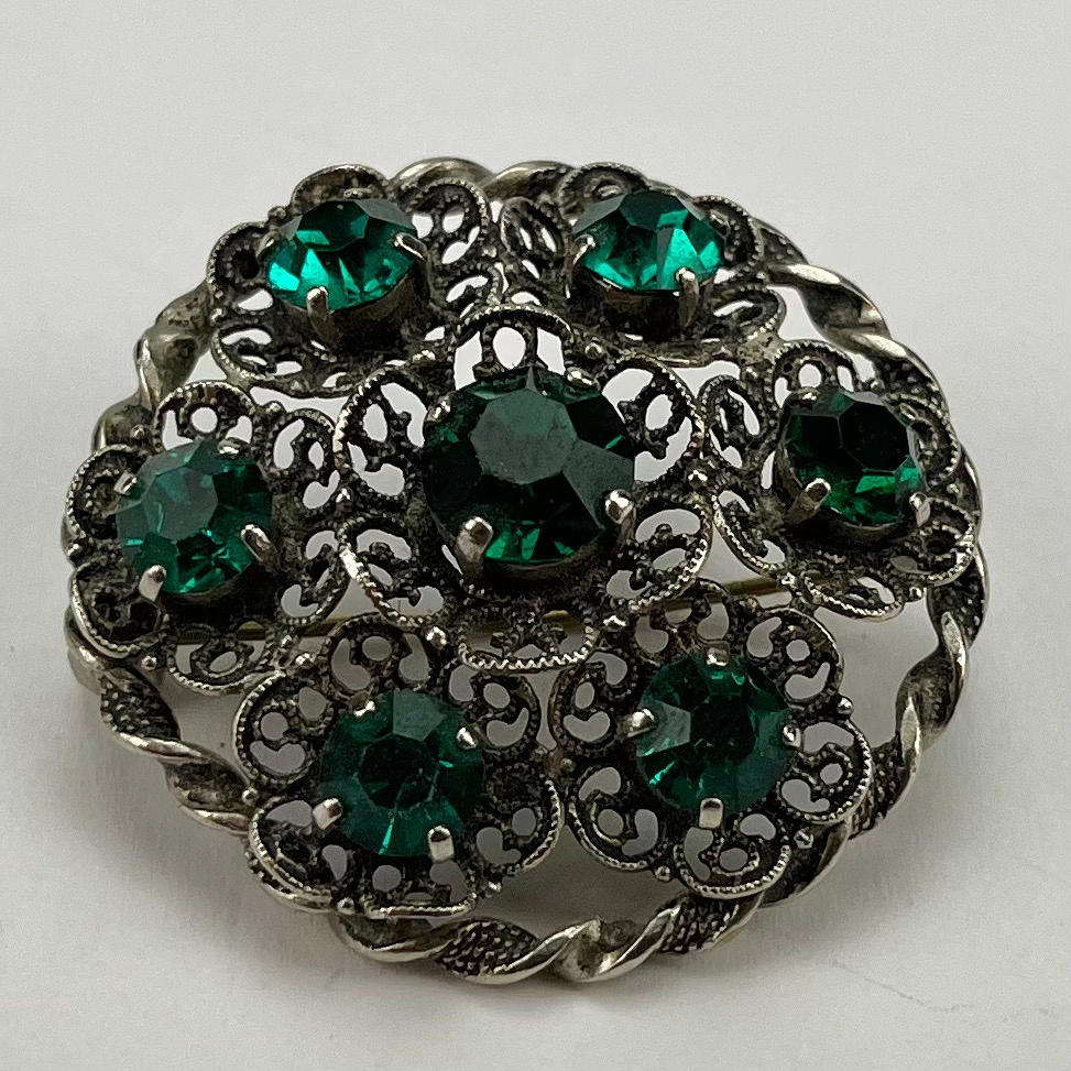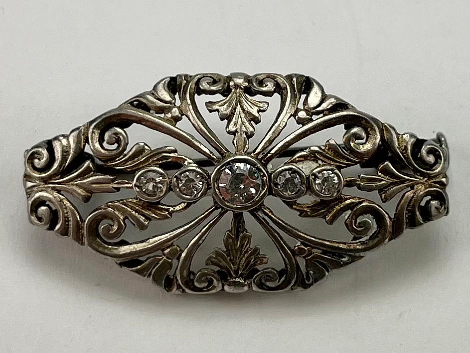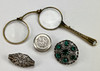Pill box, silver. Brooches, 2 pieces, one brooch probably silver, length approx. 3.5-4 cm. Lornjett, length approx. 10.5 cm.