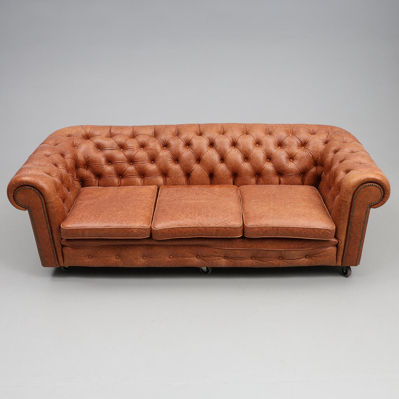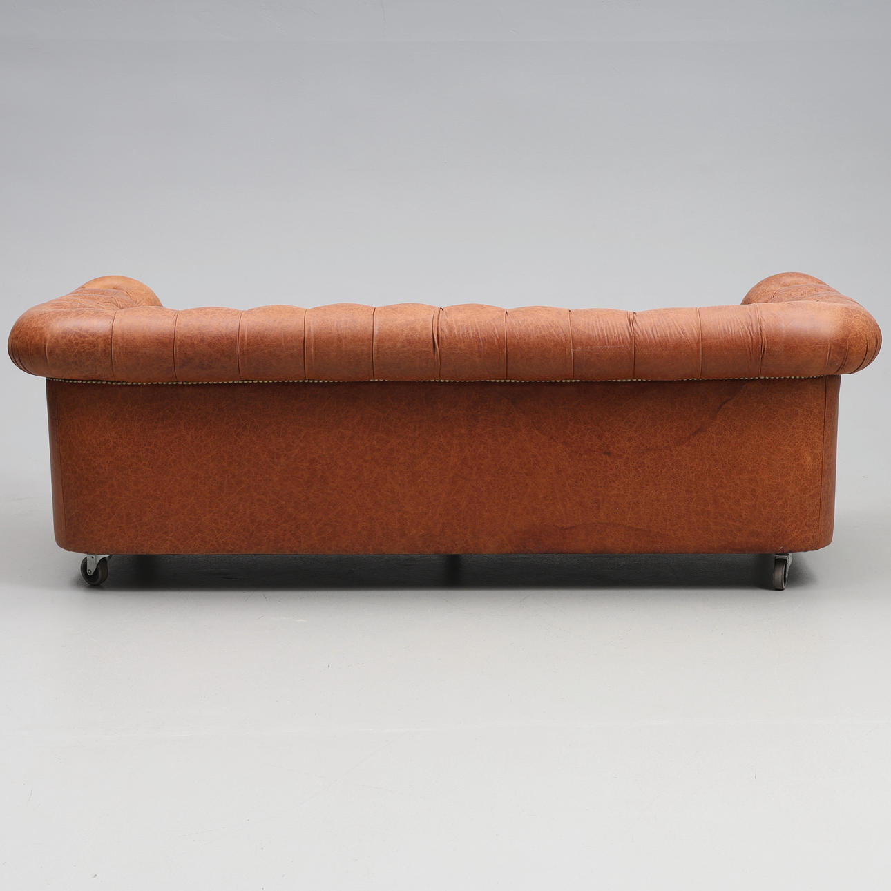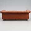 Leather sofa on wheels, Approx. 210 x 90 x 68cm.