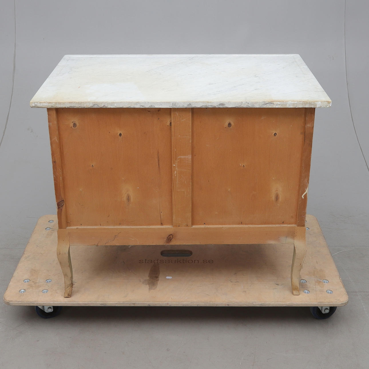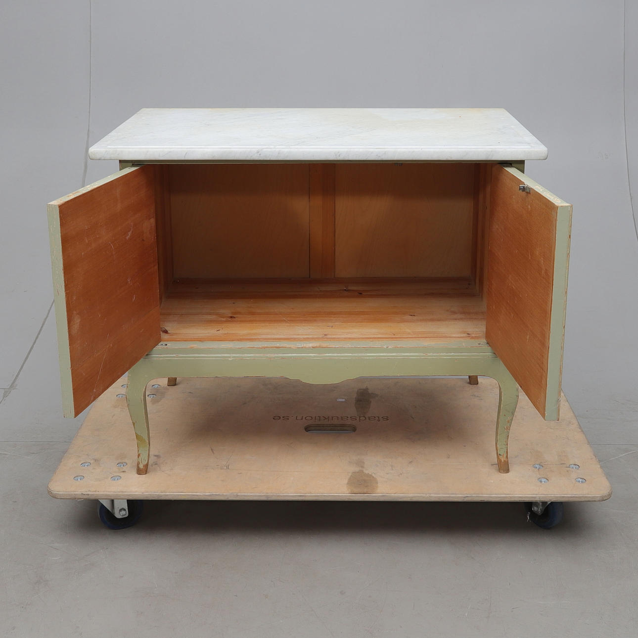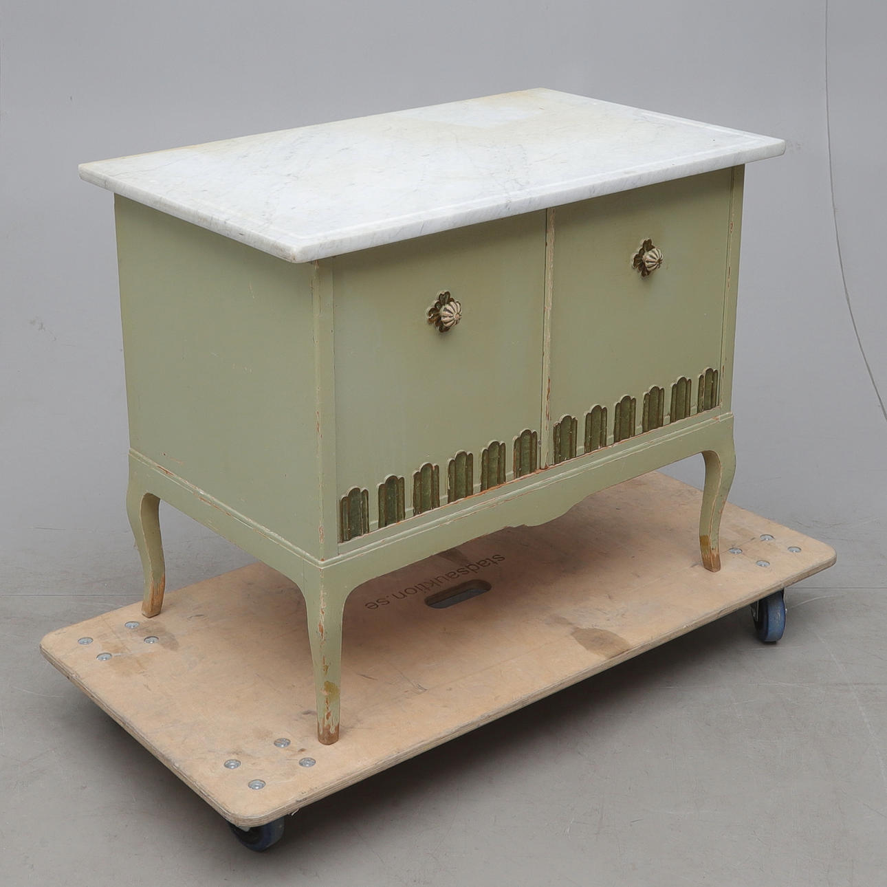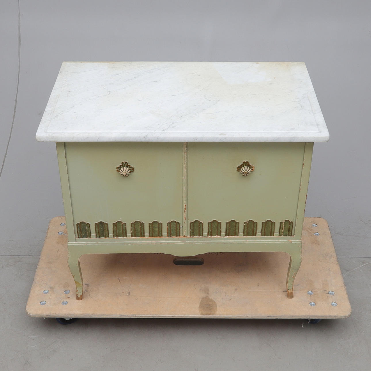 Painted. Marble top. Length approx. 90, width 55, height 72 cm.