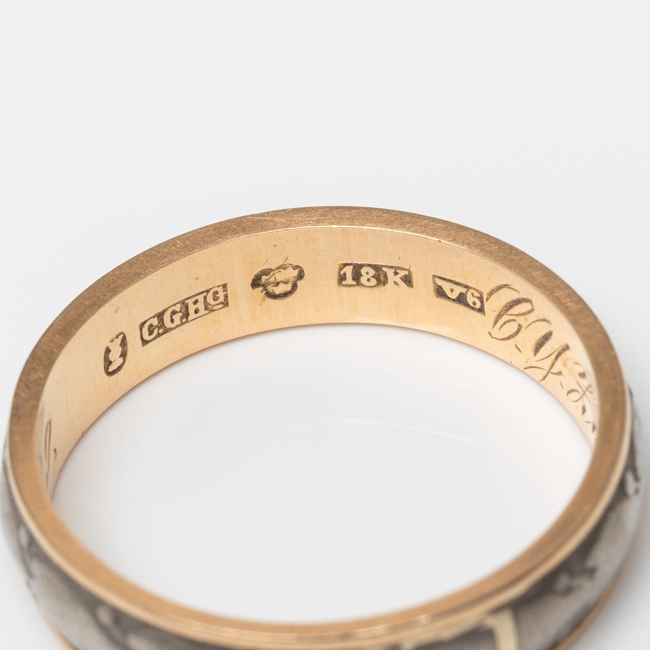 4360834. AN ENGINEER'S RING, gold, 18K and silver, CG Hallberg, 1899.