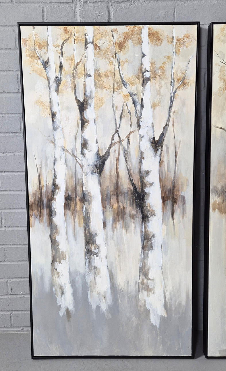 acrylic on canvas, each panel framed, 123.5cm x 62,5cm per panel approx. (3).