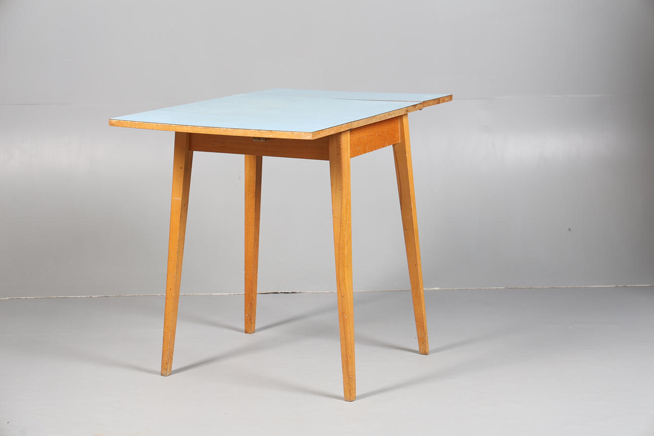 4361301. A SMALL VINTAGE RETRO BLUE DROP LEAF KITCHEN TABLE.
