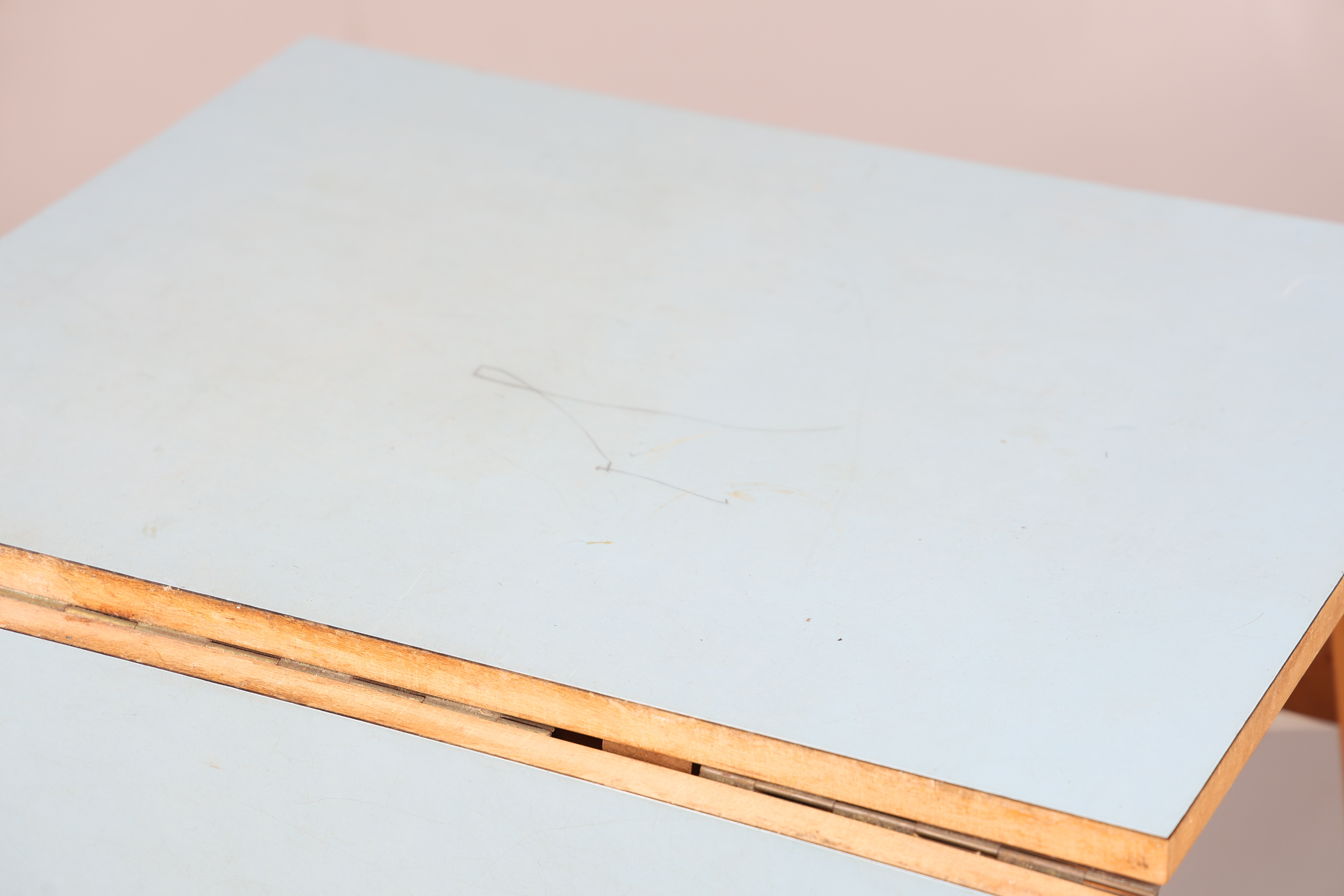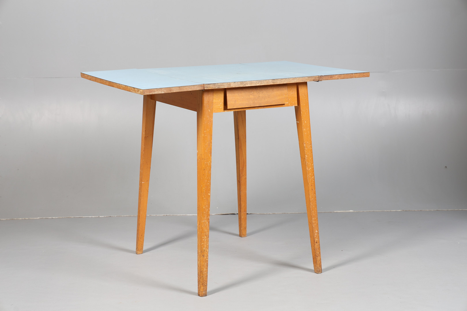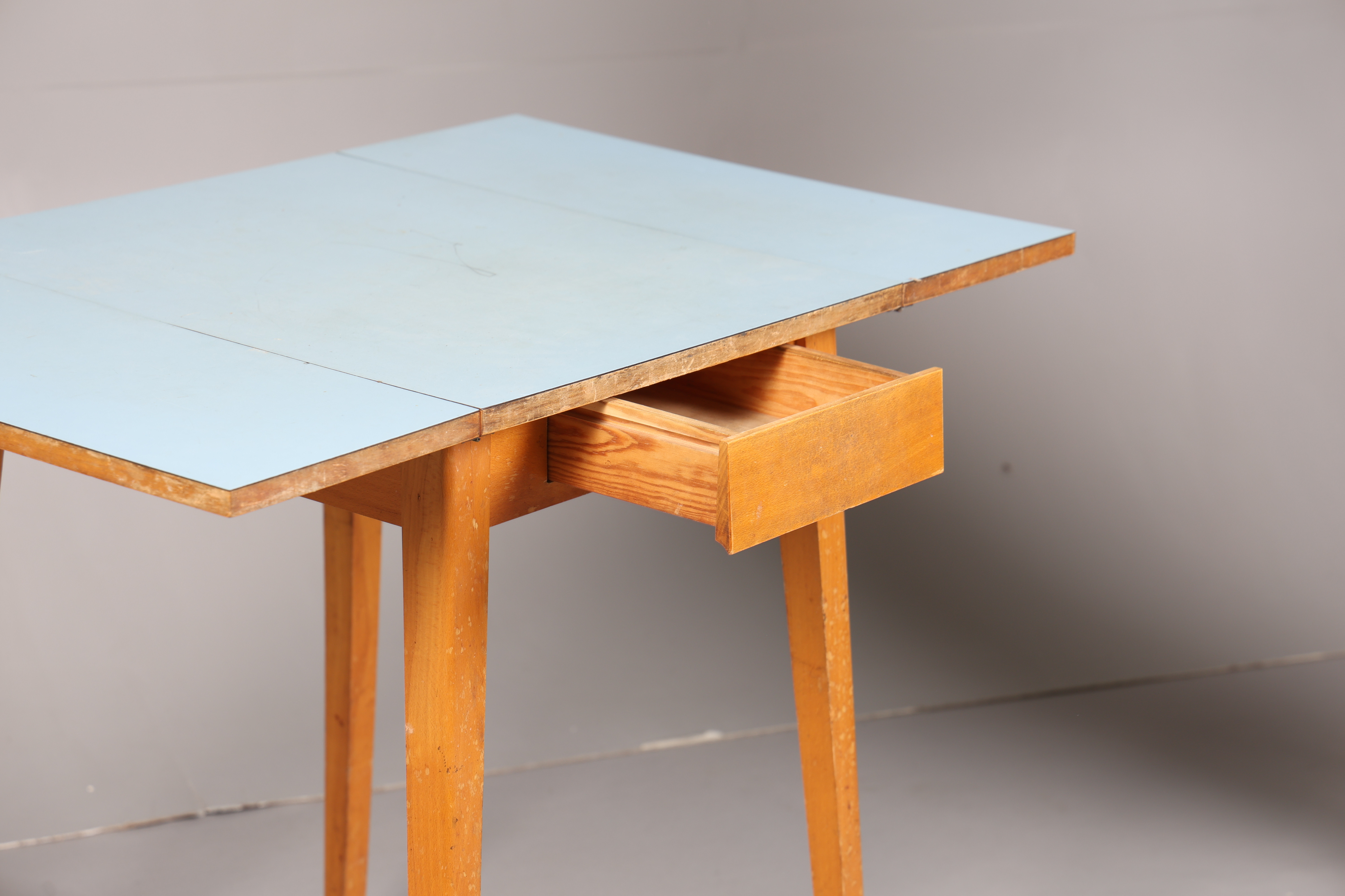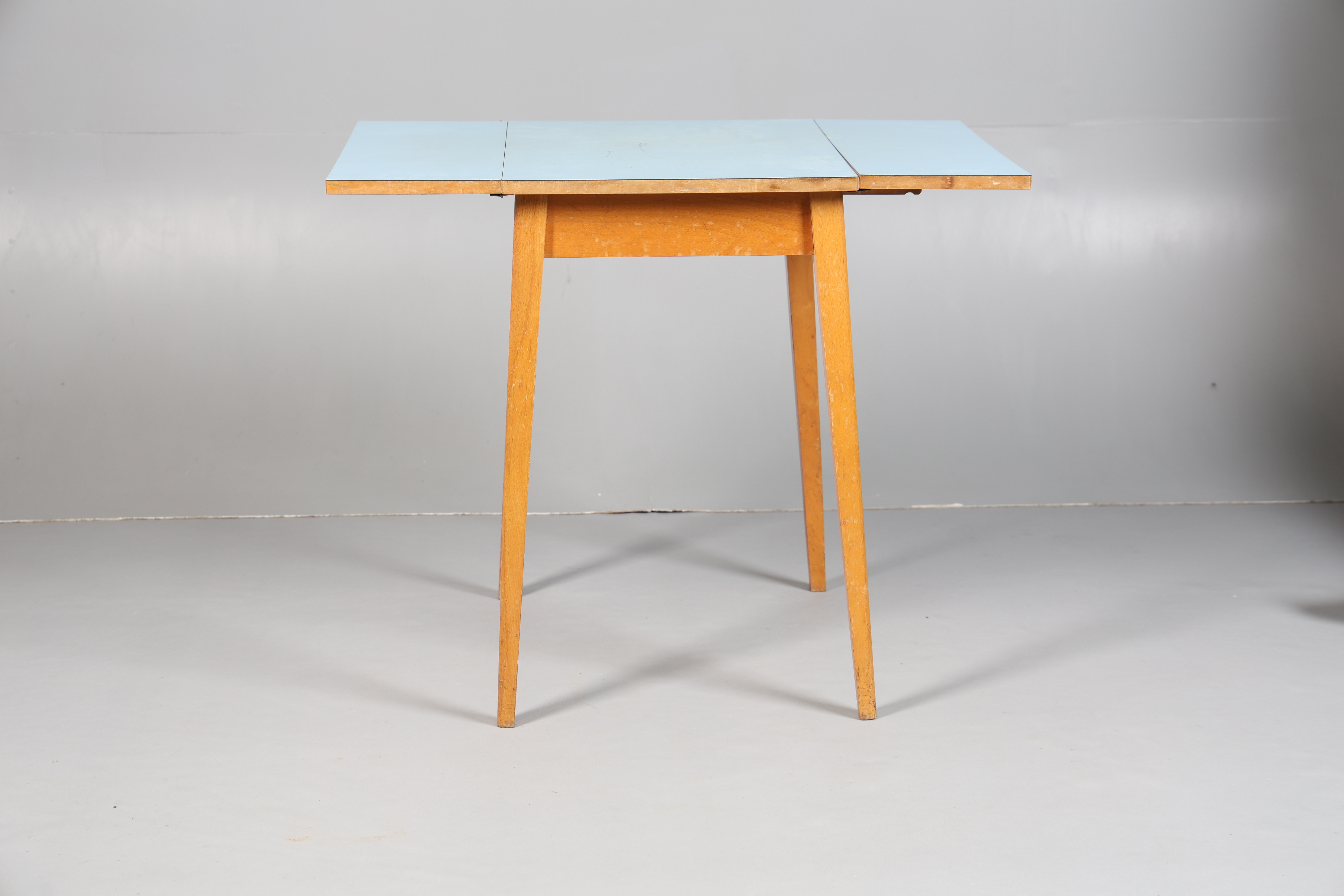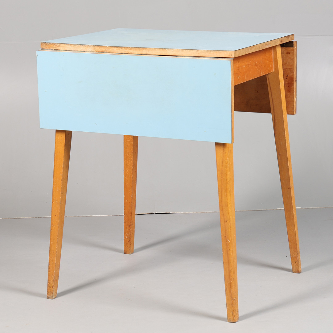4361301. A SMALL VINTAGE RETRO BLUE DROP LEAF KITCHEN TABLE.