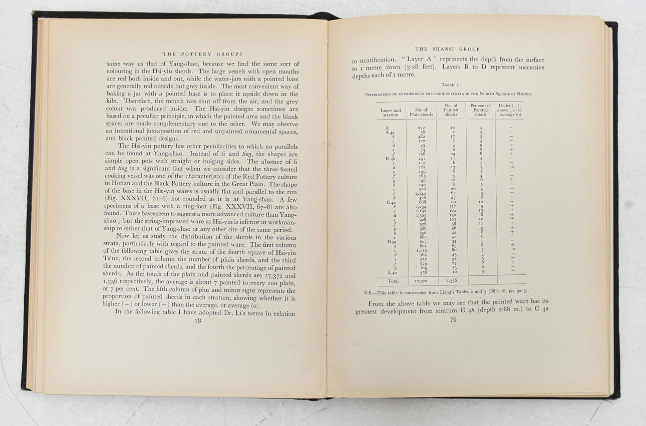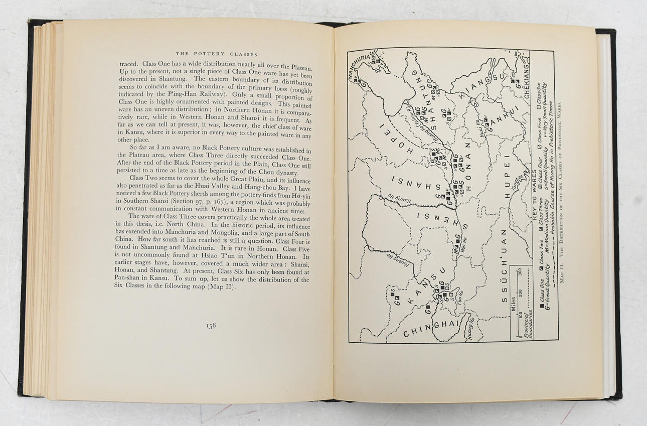 1st Edition. : xii +180 + 64pp, bibliography, index, chart, 64 bw plates,2 maps, chronology' pottery type sets classified in 7 provincial groups, based on color, shape, material, thickness, technique, and arranges sites in each provincial group in a chronological sequence.