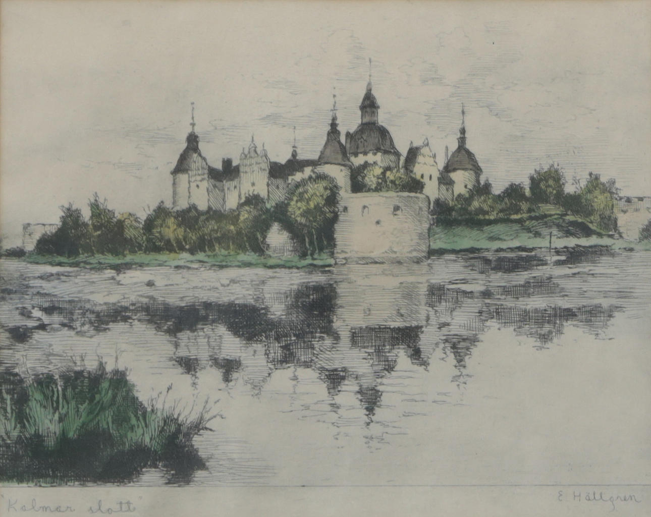4361467. ERNST HÄLLGREN. GRAPHIC SHEET, Kalmar Slott, signed.