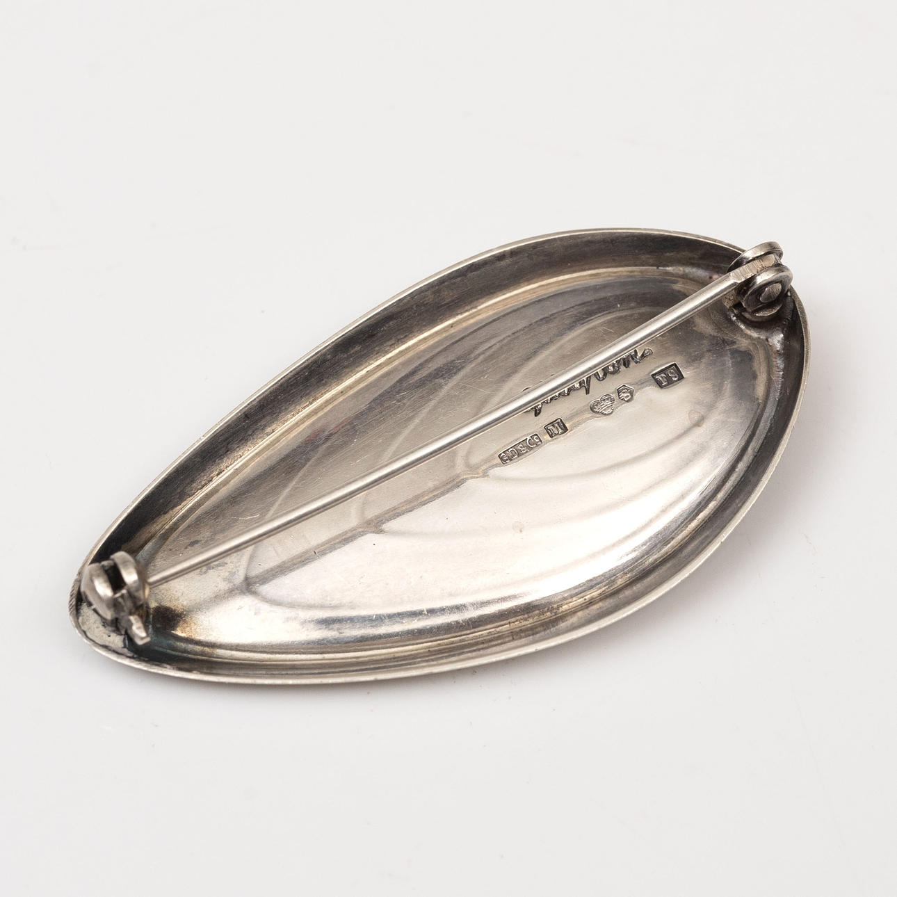 Silver brooch with a cabochon-cut garnet