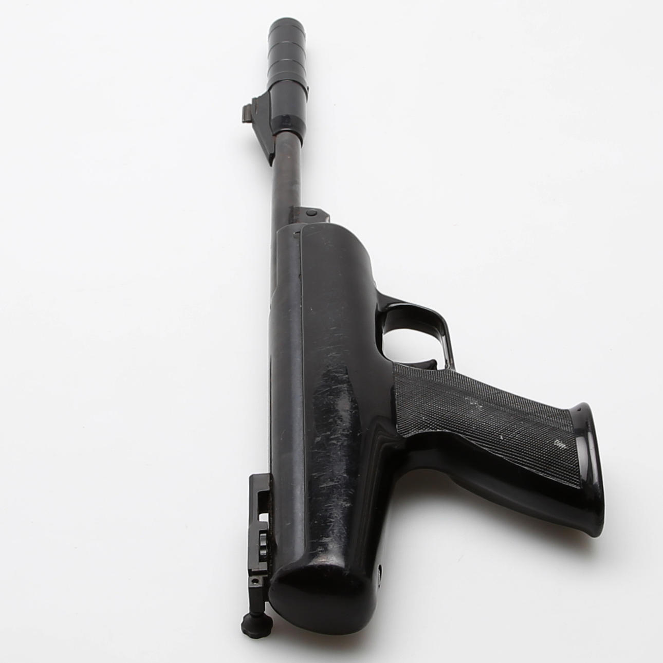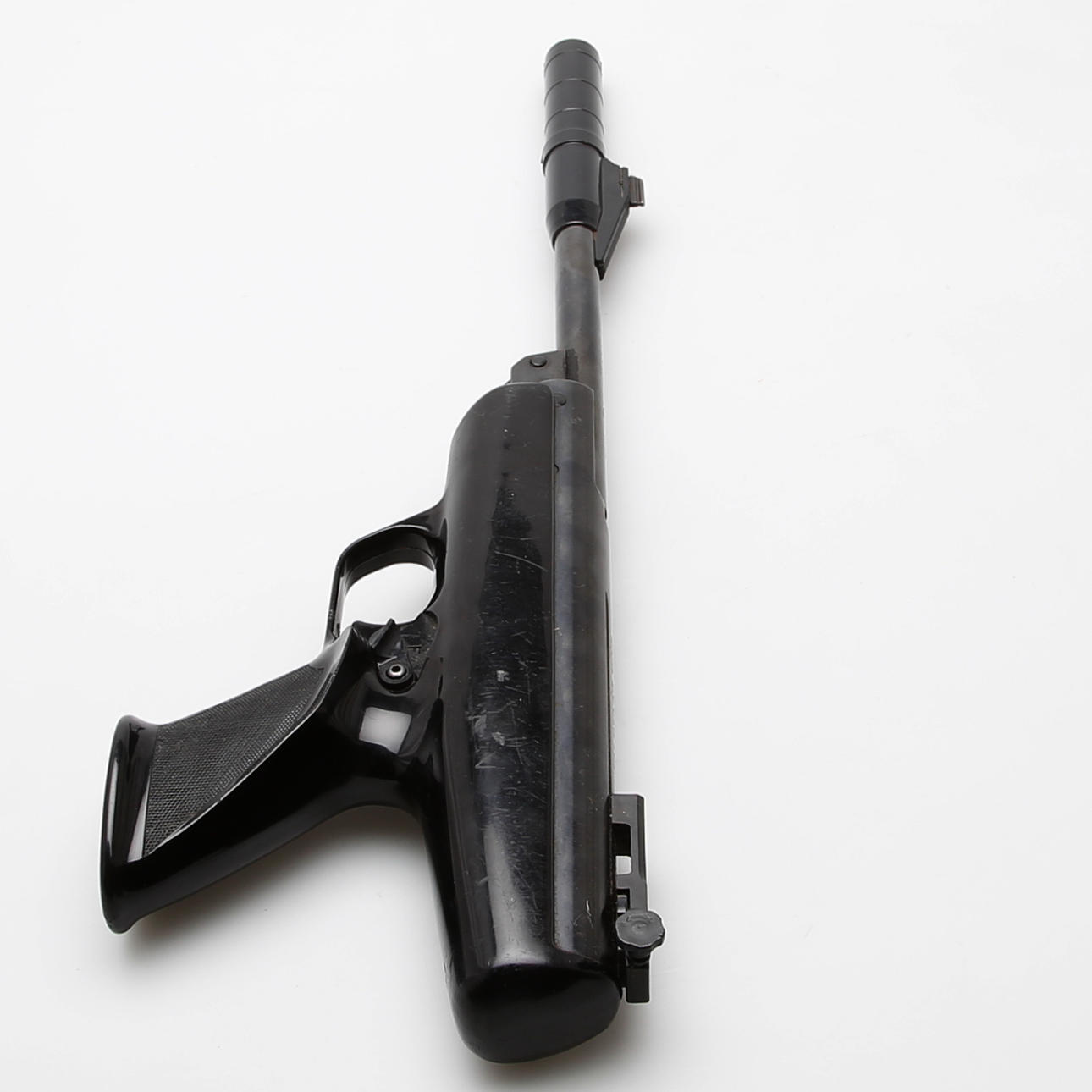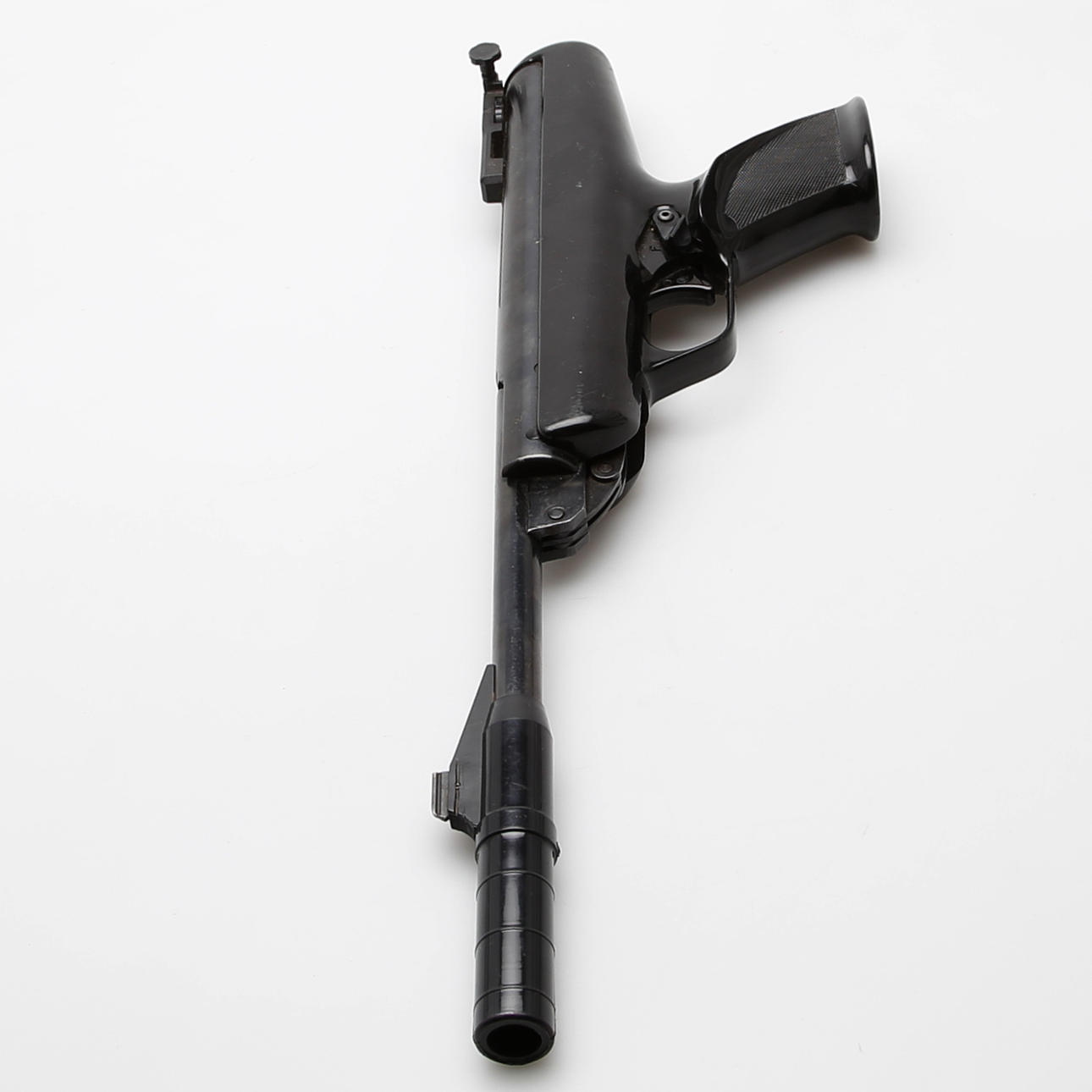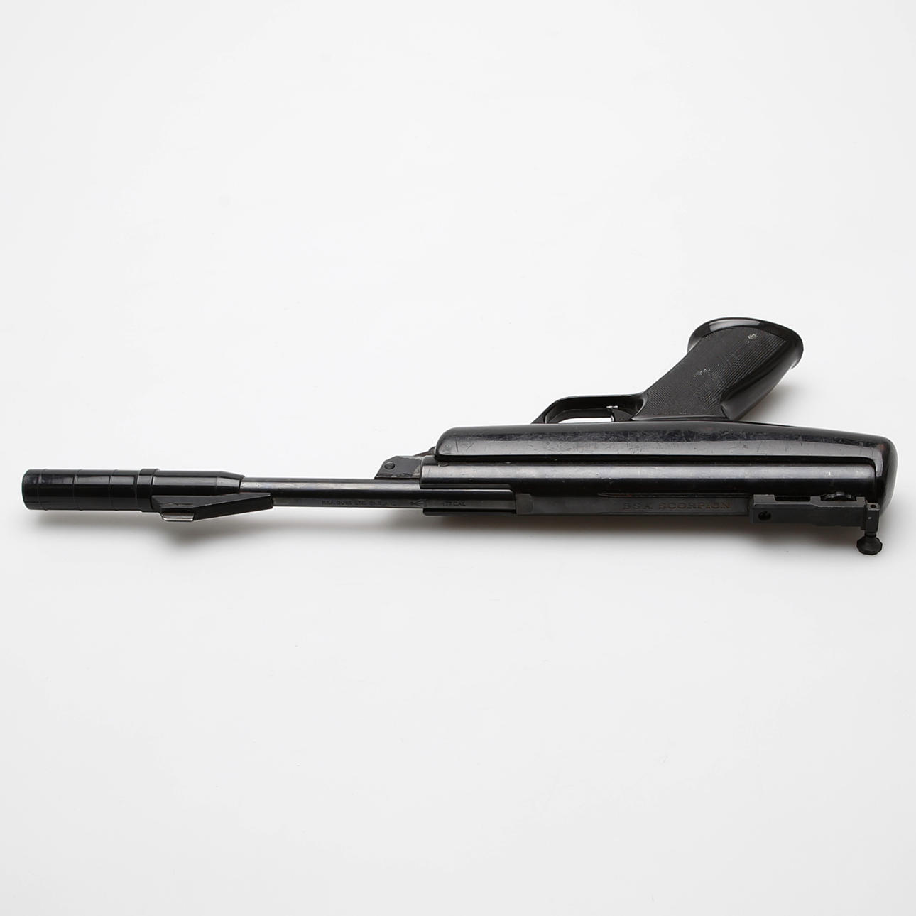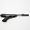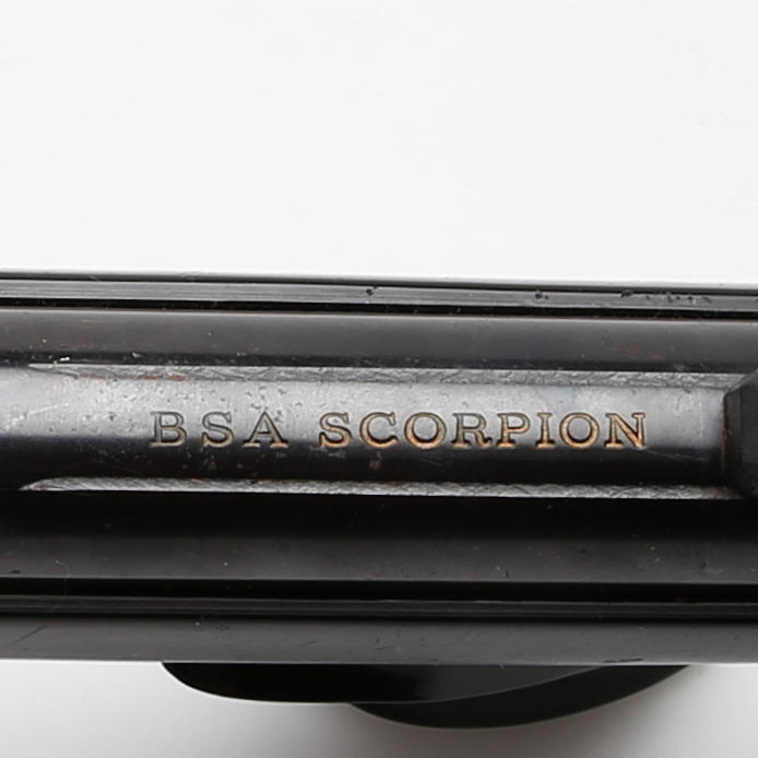 BSA air pistol caliber 4.5 mm. Piston in plastic with blued steel parts, fuse, removable handle for breaking the barrel, length 46 cm.