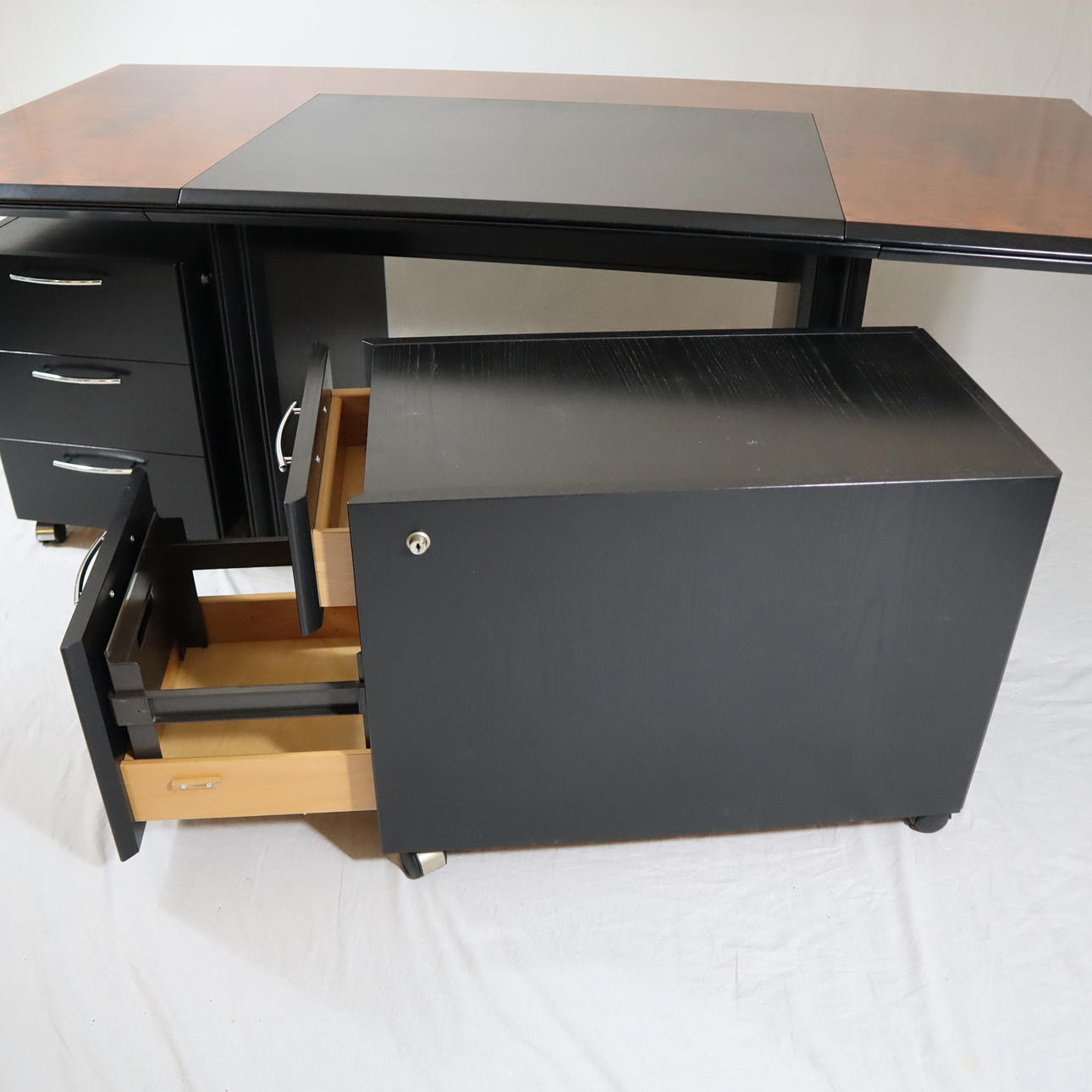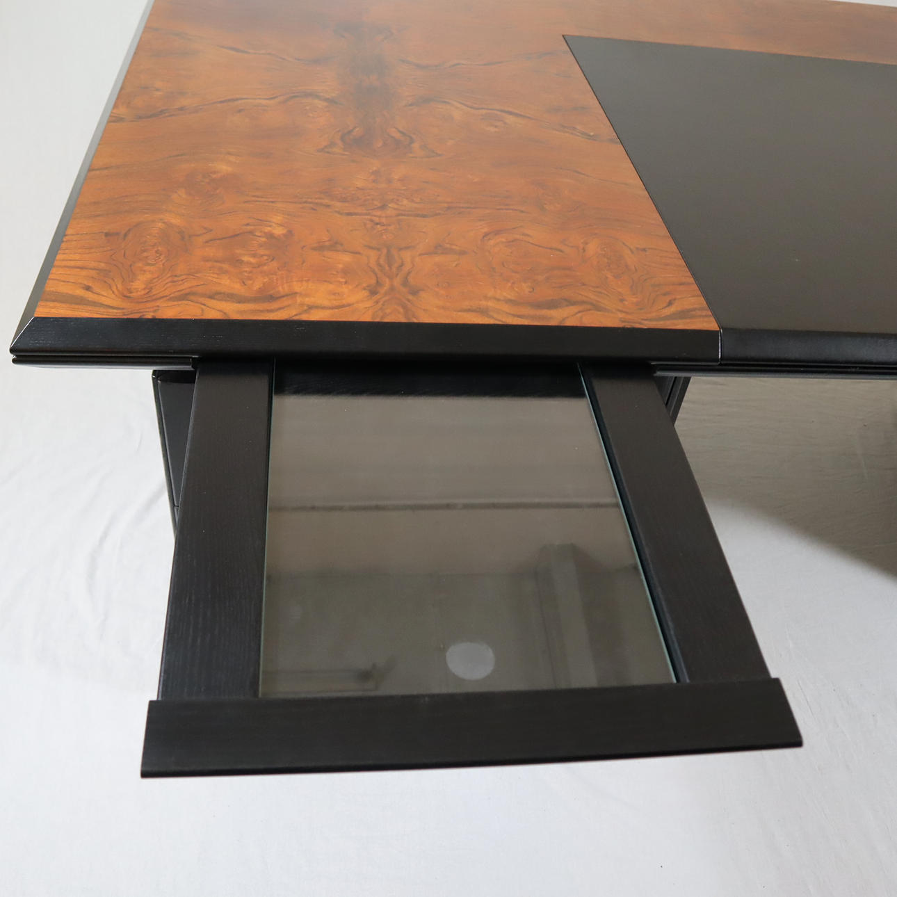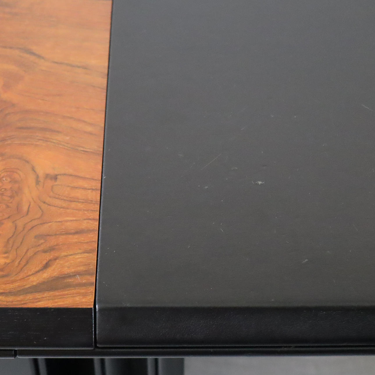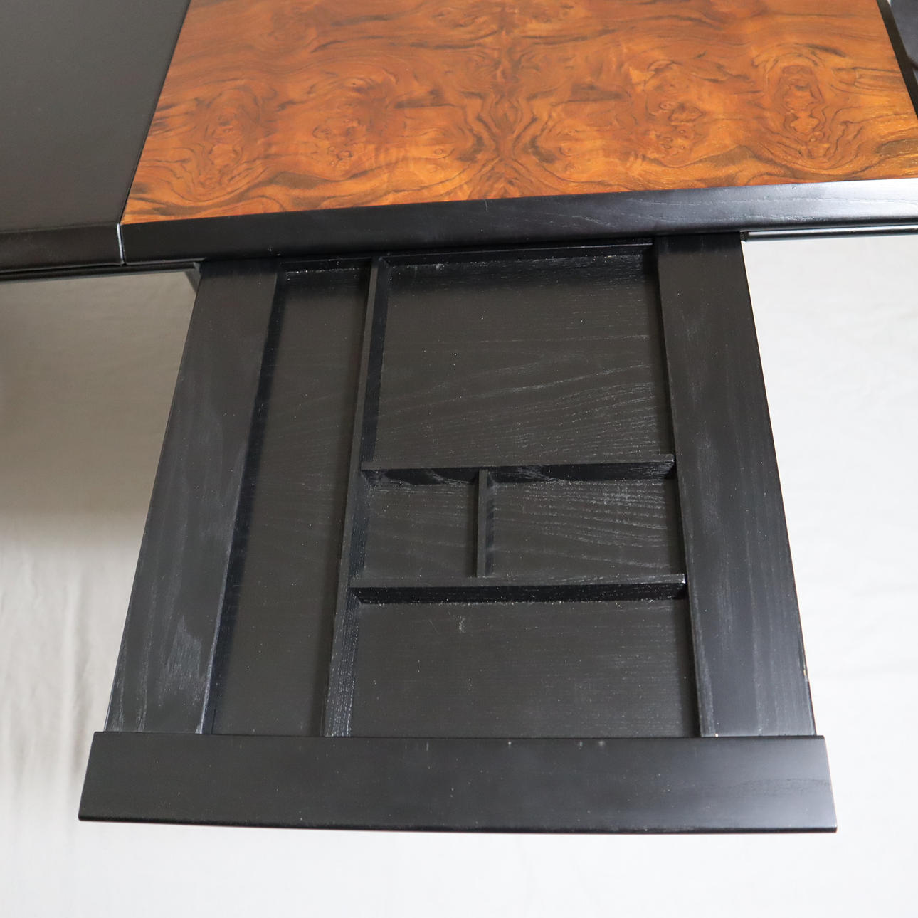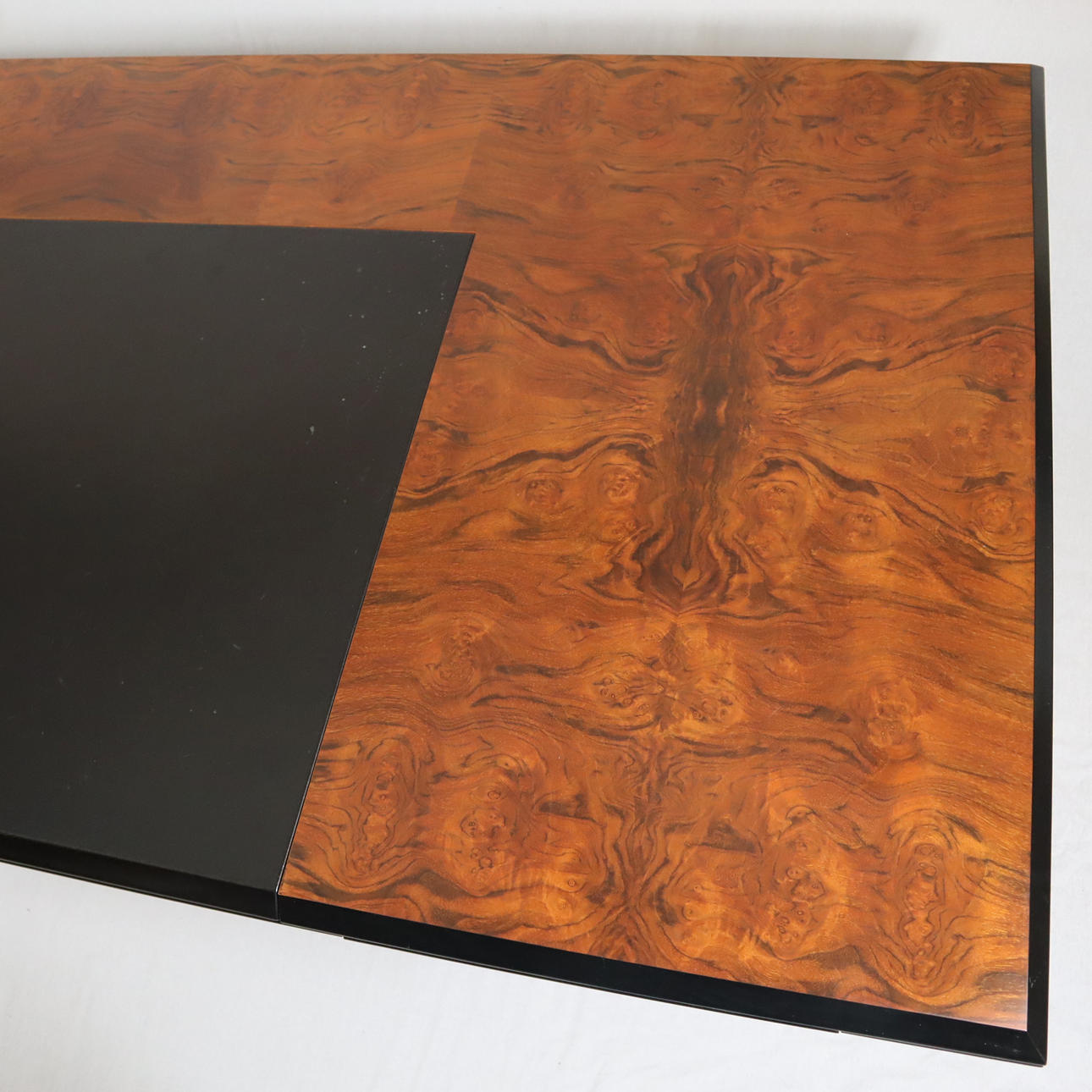 Pressed wood, partly veneered in black, l.xb.xh. cca 210 x 102 x 75 cm.