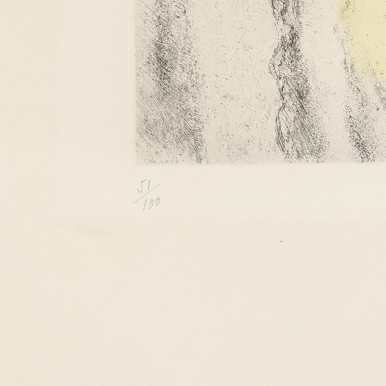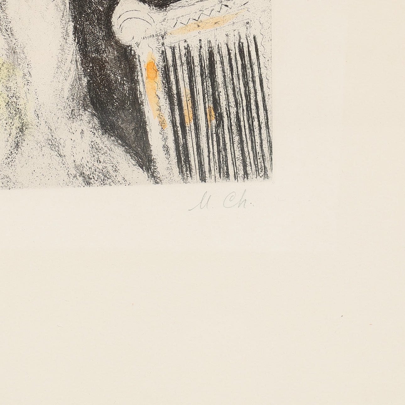 Bible etchings "Song of David”, (Cramer #30) from Portfolio: Bible Etchings, 1930-1958. Original etching with watercolour on Arches woven paper, pencil signed M. Ch and numbered 51/100. 31 x 23 cm (68 x 53).