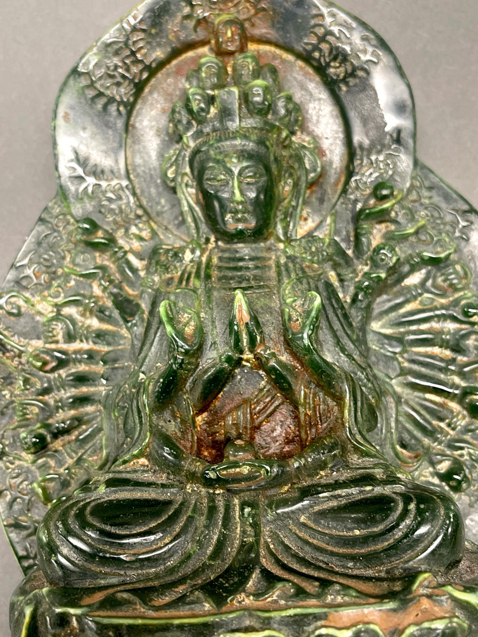 A reconstituted stone figure of a multi-arm goddess, H. 21cm.