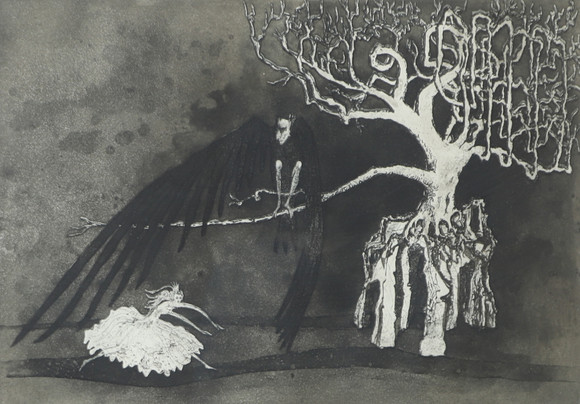 STIG LINDBERG. Colour lithograph, “Beauty and the Beast”, signed and dated 1978.