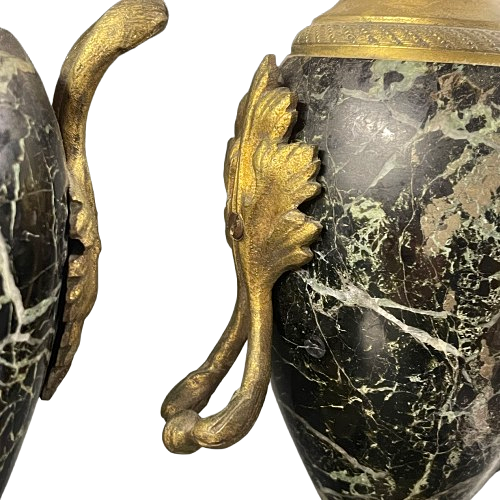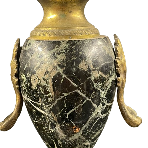A pair of 19th century ormolu mounted marble garnitures, H. 30cm.