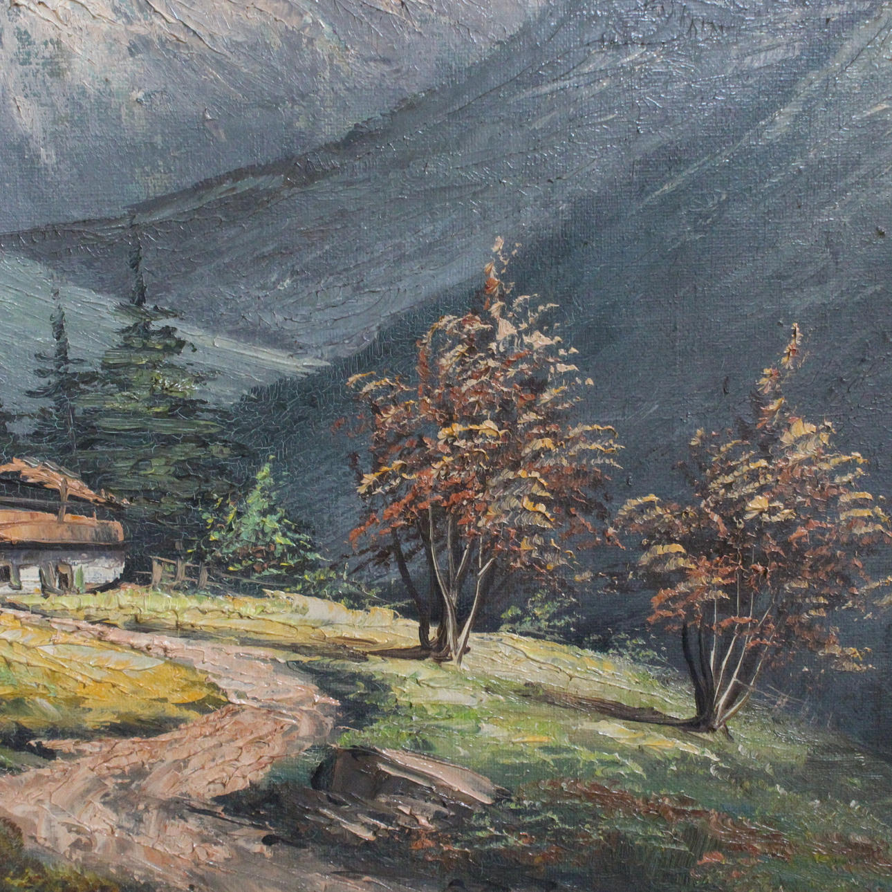 4362234. Unknown artist. 'Alpine Landscape', oil on canvas, signed.