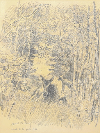 4362607. TORBJÖRN FORSBERG. Sculpture, bronze moose cow with calf, signed and dated 1994.