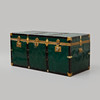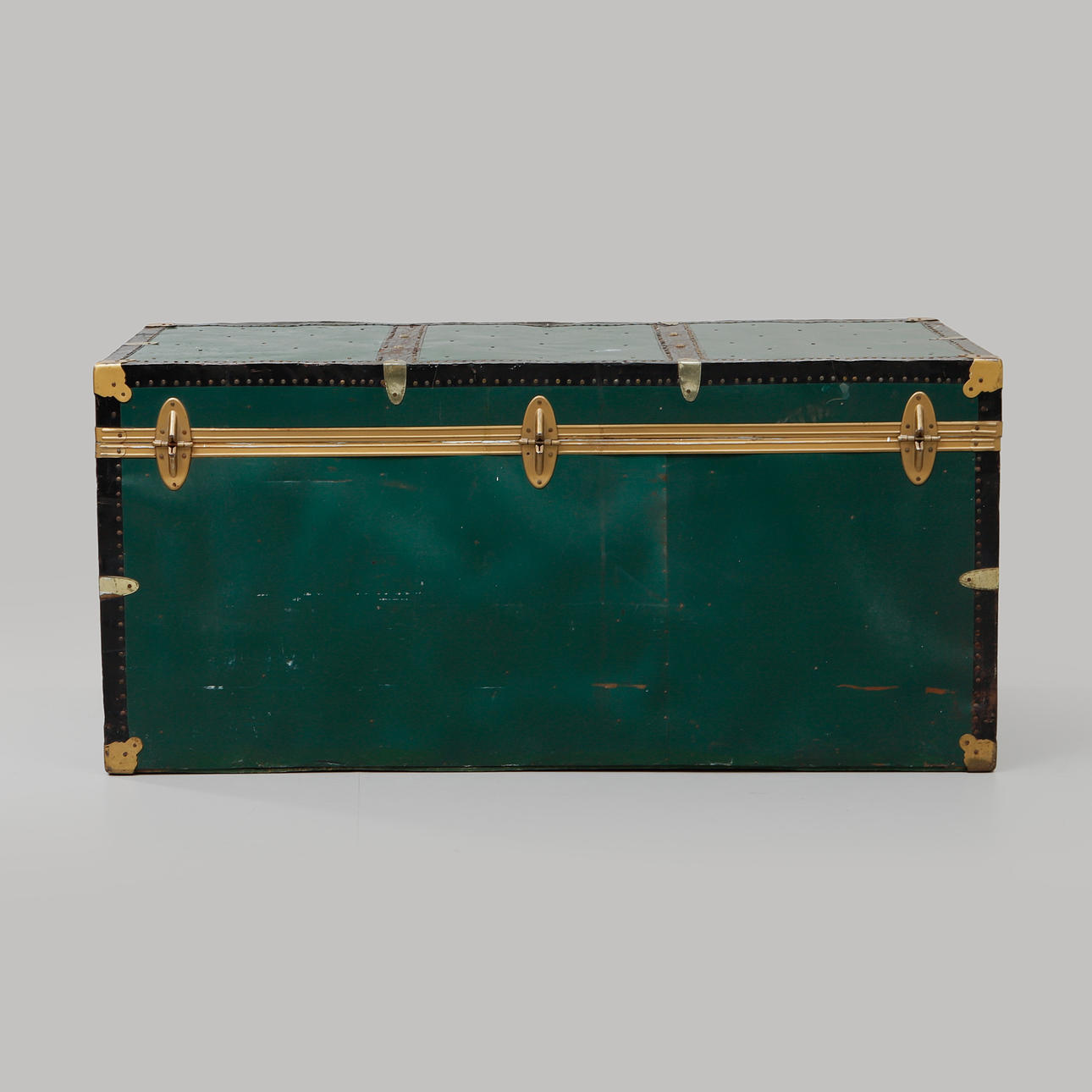 Frame made of wood. Clad in metal. Green and black patinated. Details in yellow metal. Interior white lacquered. Length 118, width 56, height 55 cm.