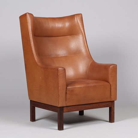 4363670. TOKE LAURIDSEN. 4 pcs, bar stools, “Adam H76", for Frama, white lacquered metal frame, seats made of cognac colored leather, contemporary manufacture.