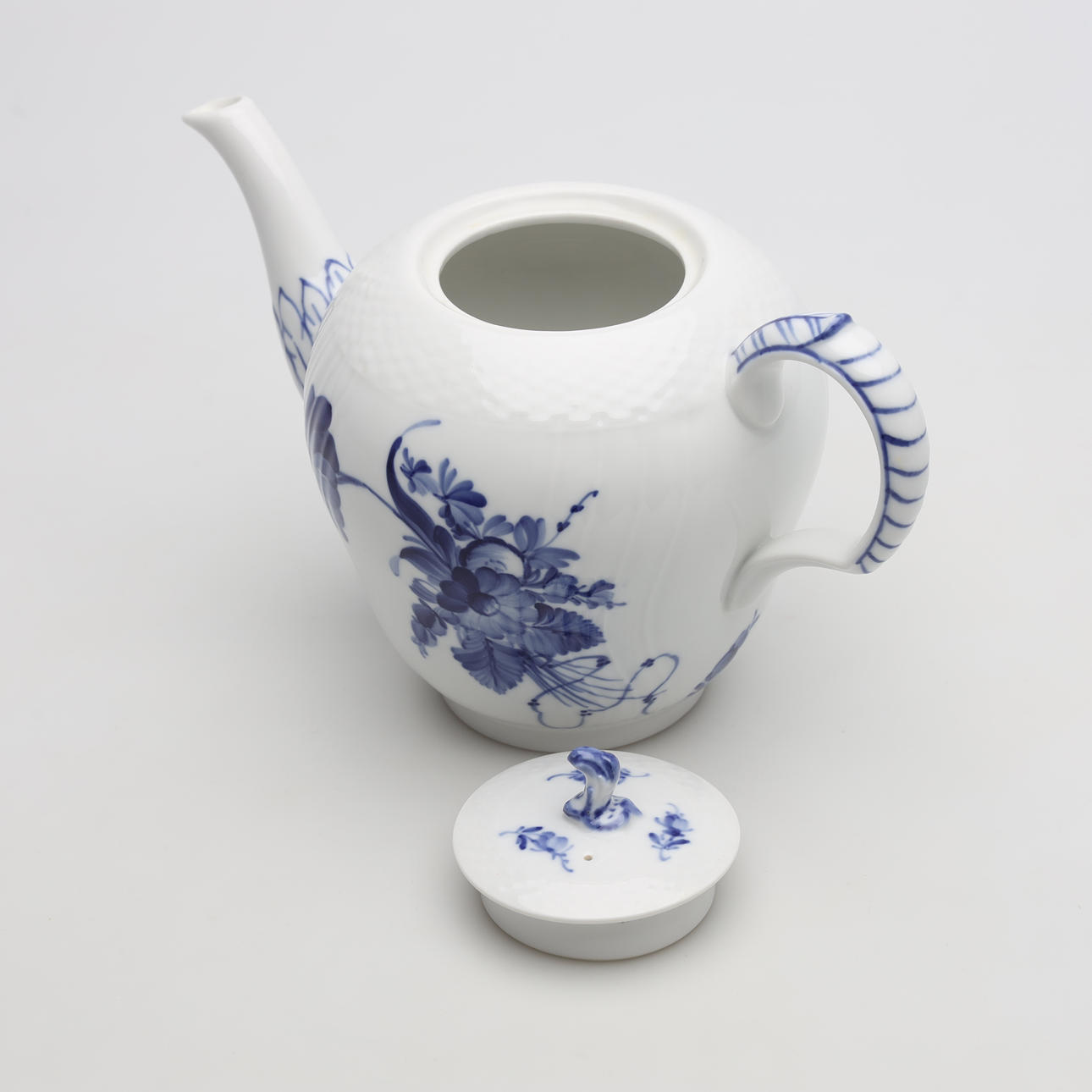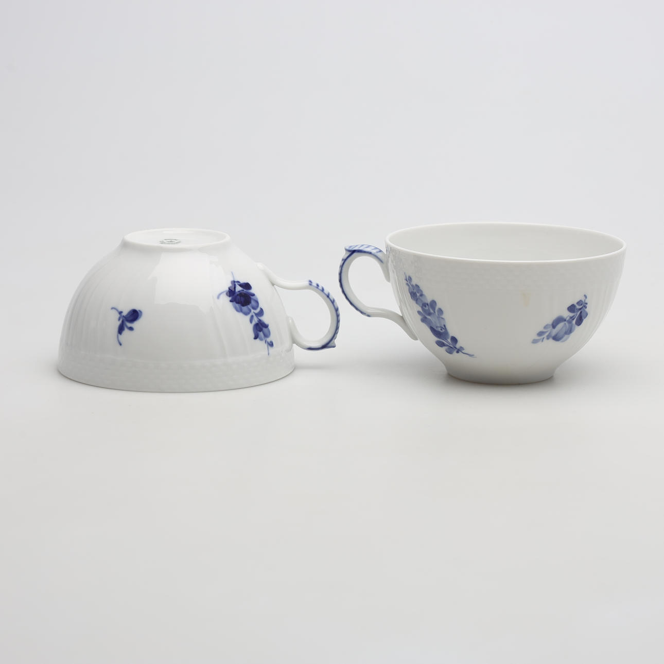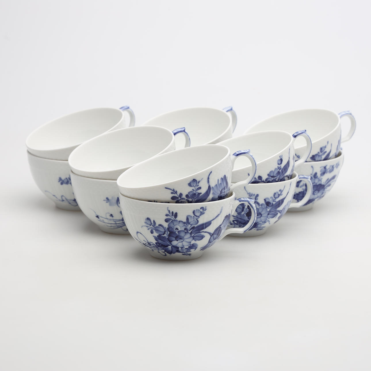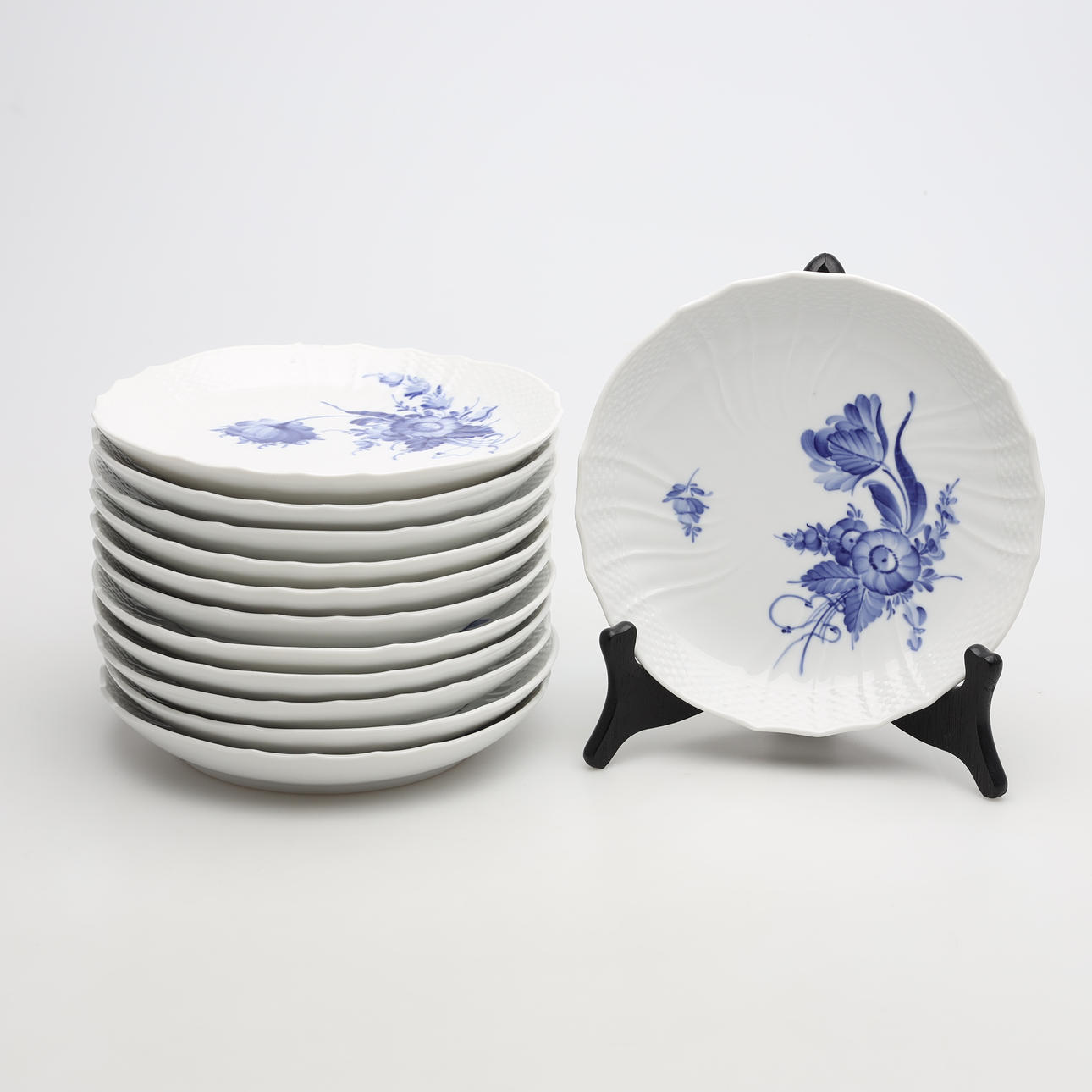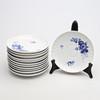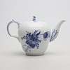 12 teacups, height 6 cm 12 side dishes, diameter 17 cm 12 side dishes, diameter 19 cm 1 teapot, height 14 cm.