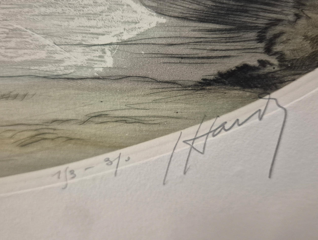 numbered and signed on the right hand side, one framed and unglazed, the other unframed. 46 cm H x 64 cm W (unframed).