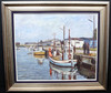 Landscaped boats at port. Dimensions of the frame approx. 70x62 cm.