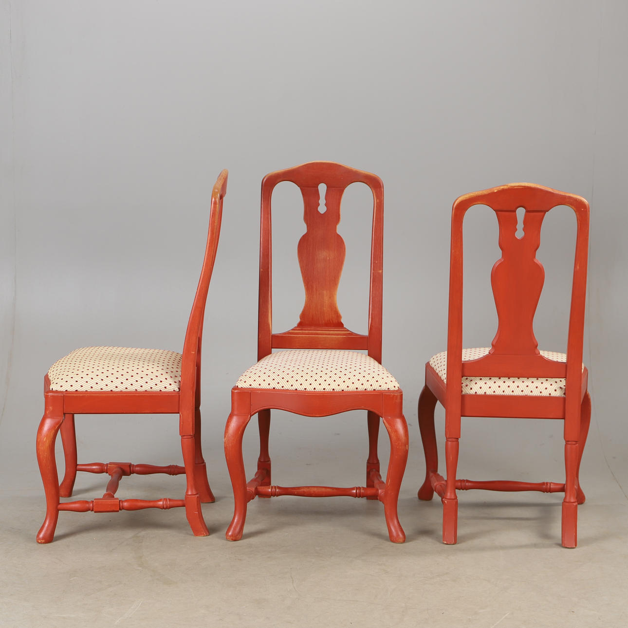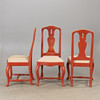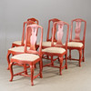 CHAIRS, 6 pieces, red painted, rococo style.