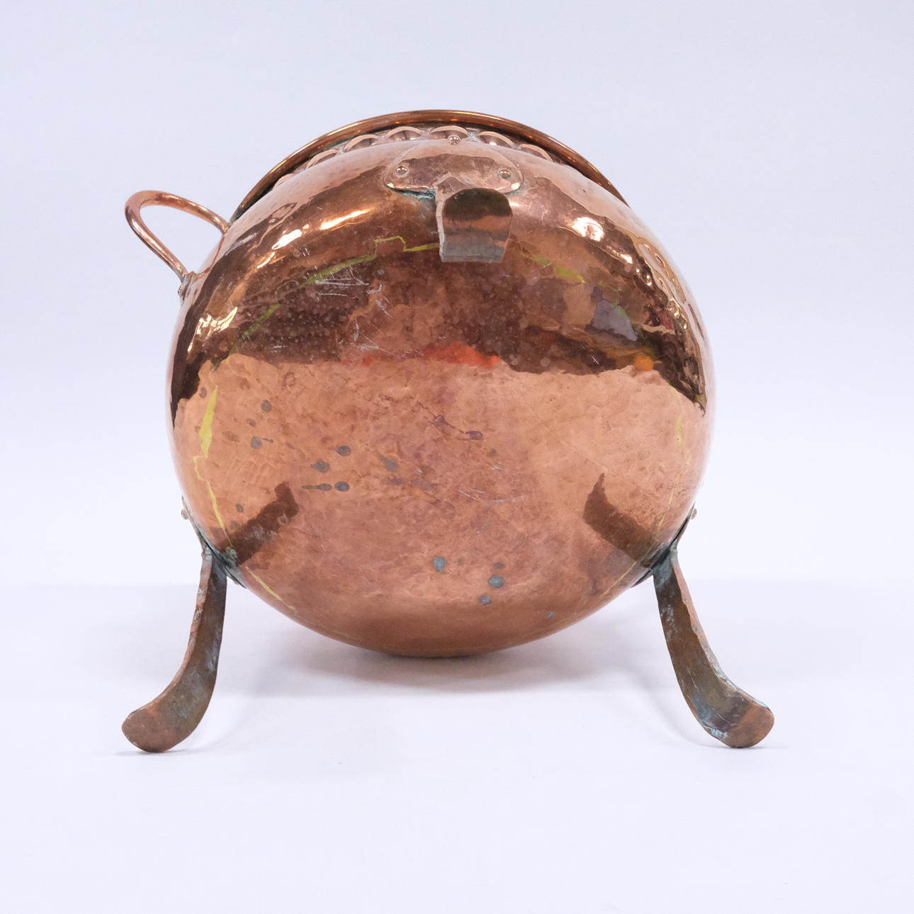 Three-legged, handle, height 25cm, diameter 25cm.