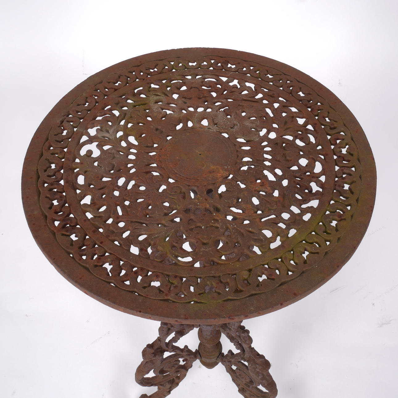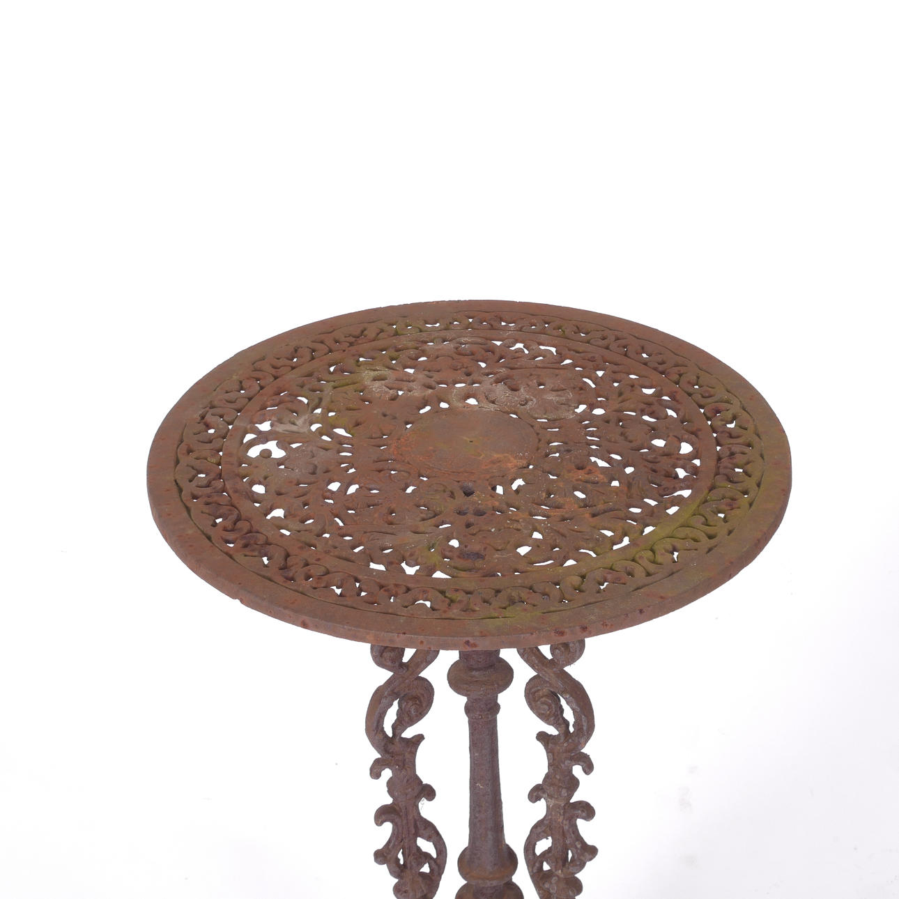 Three-piece frame with grips and plants. Disc with openwork decor. Diameter 40 cm, height 79 cm.