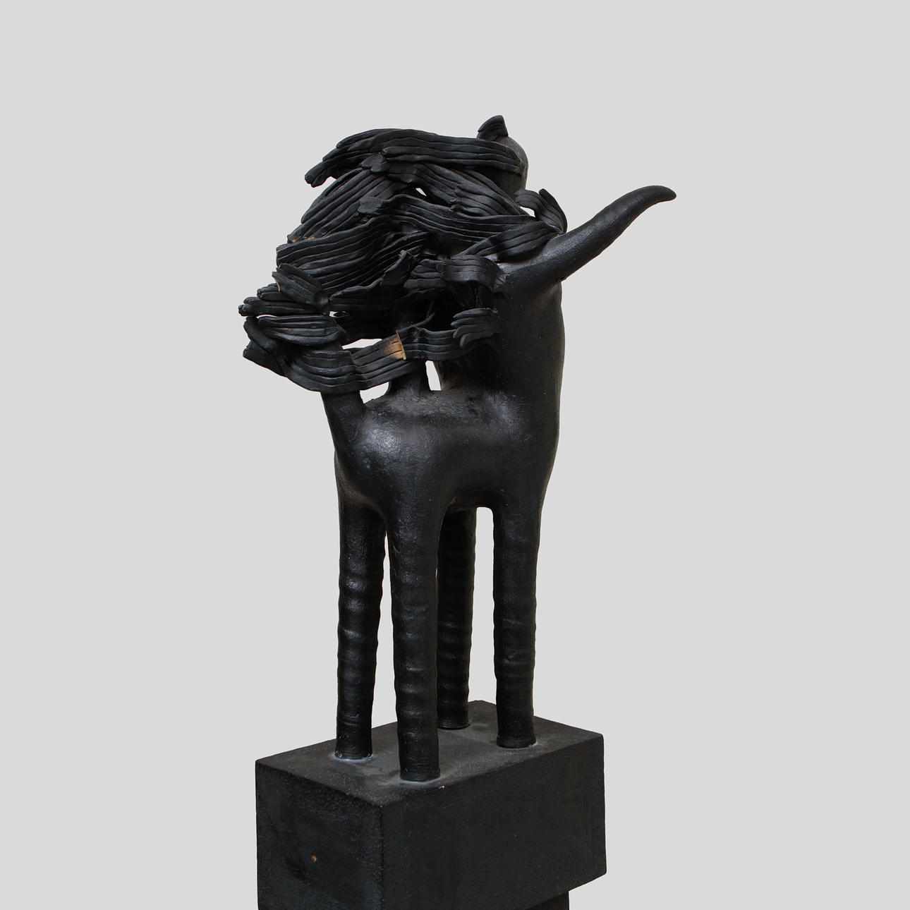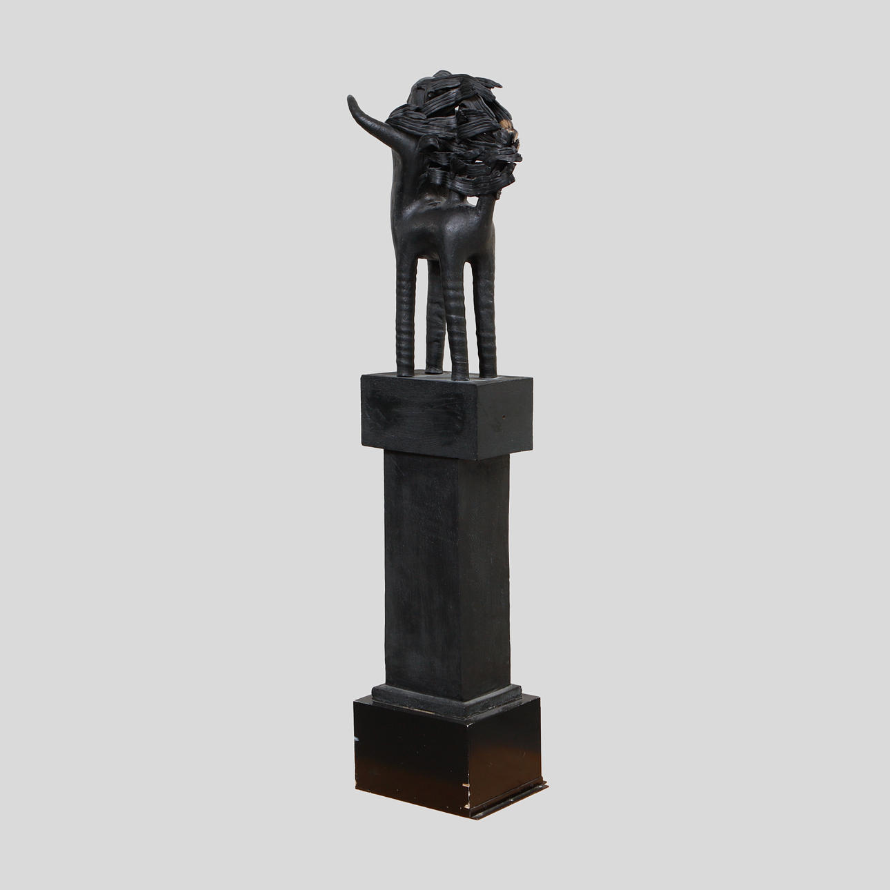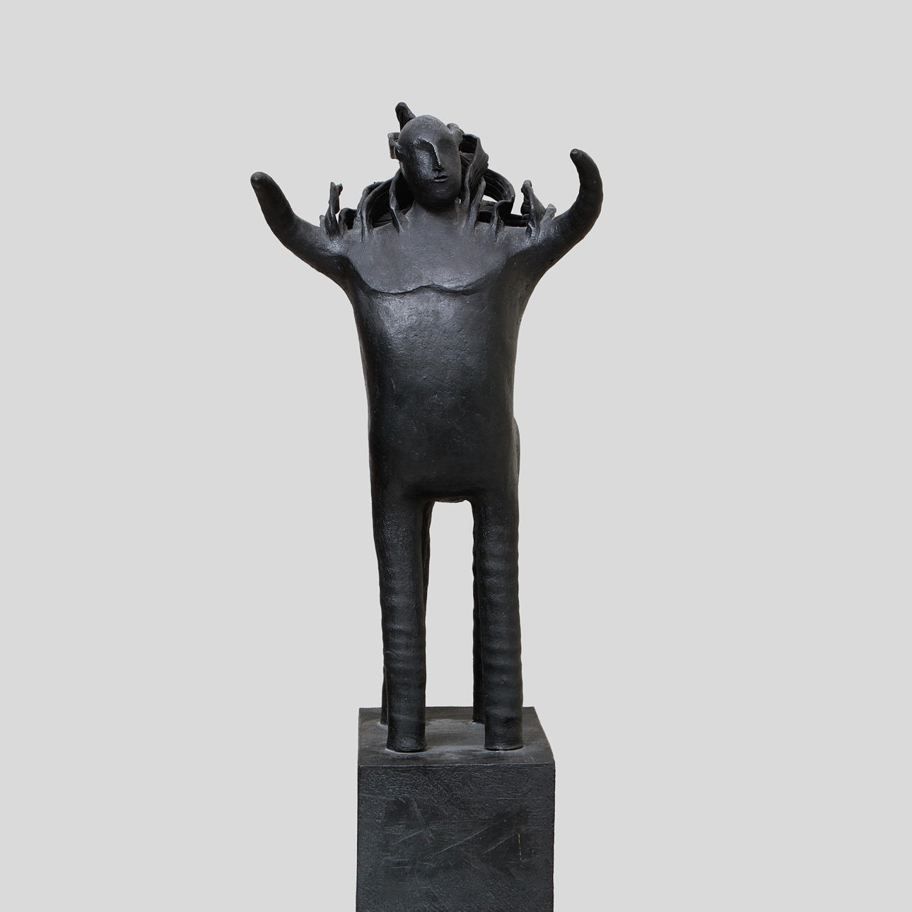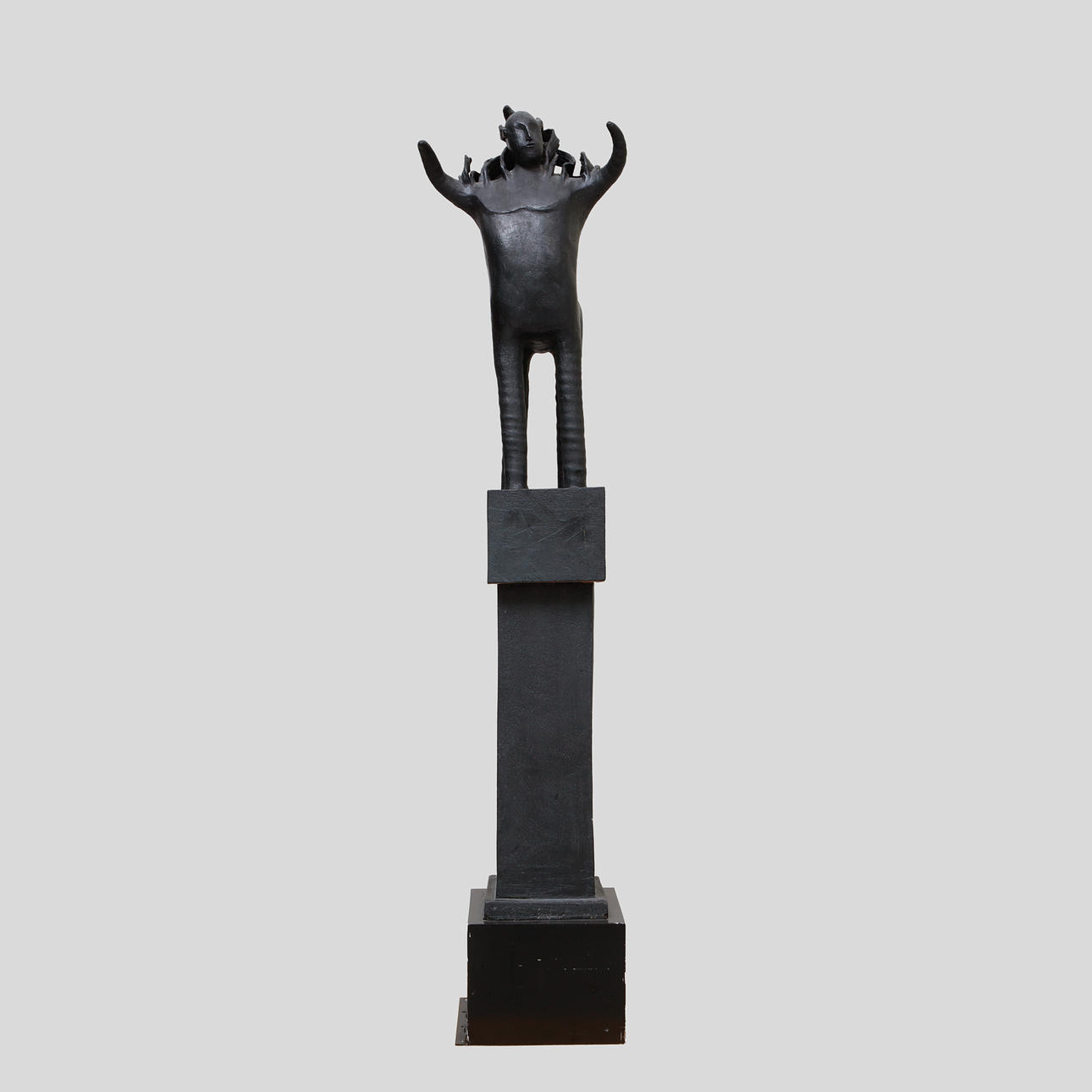 Glazed in black tones. Height 137 cm, incl. wooden plinth approx. 158 cm.