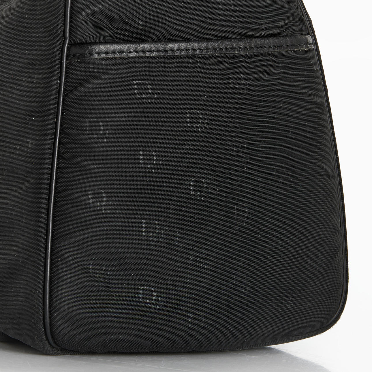 Black vintage Dior bag in duffle model. Nylon fabric with logo pattern, handles and details in leather.