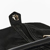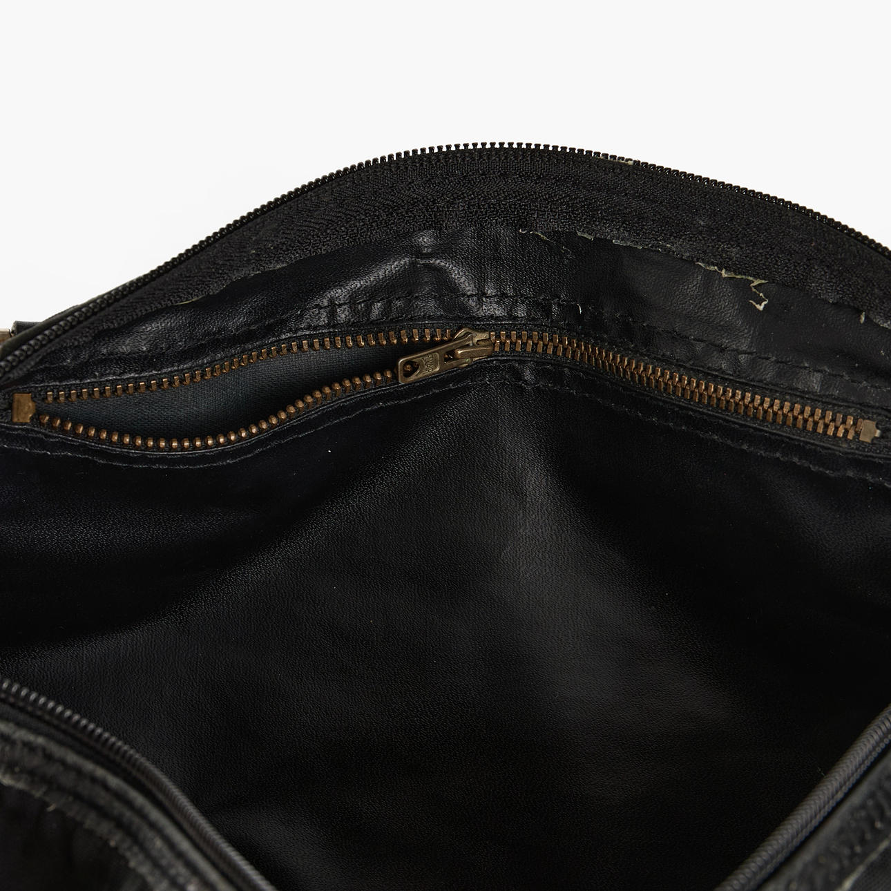 One side compartment, one small pocket inside, zipper closure.