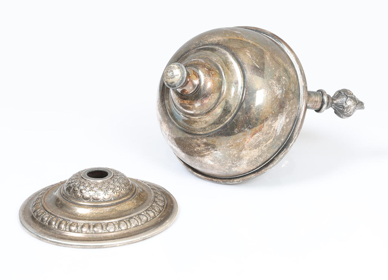 body is detached from the foot, surface tarnishing, scratches and marks.