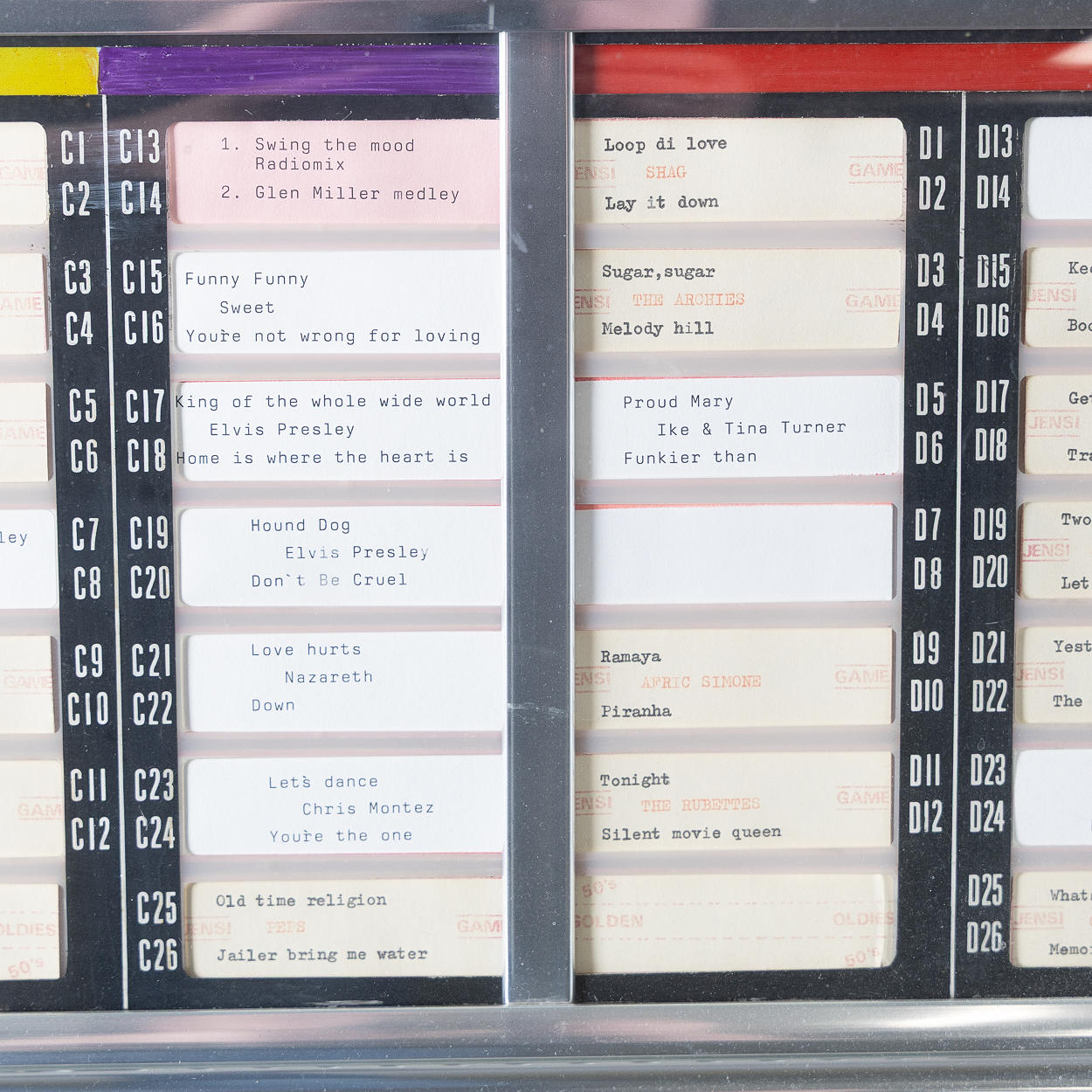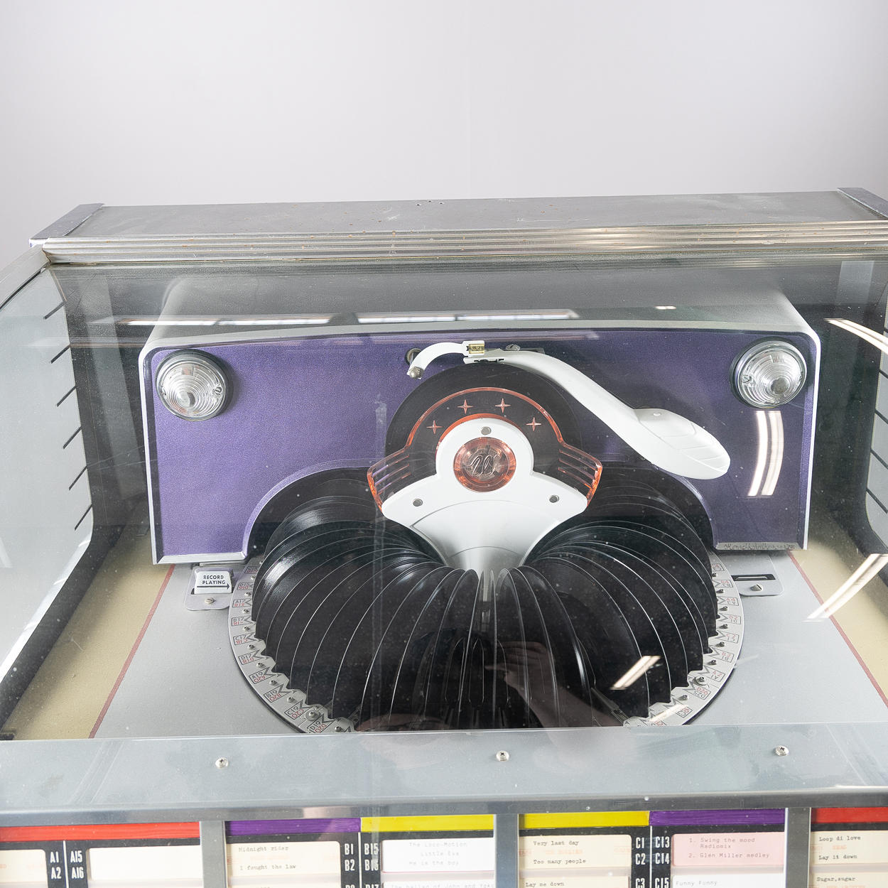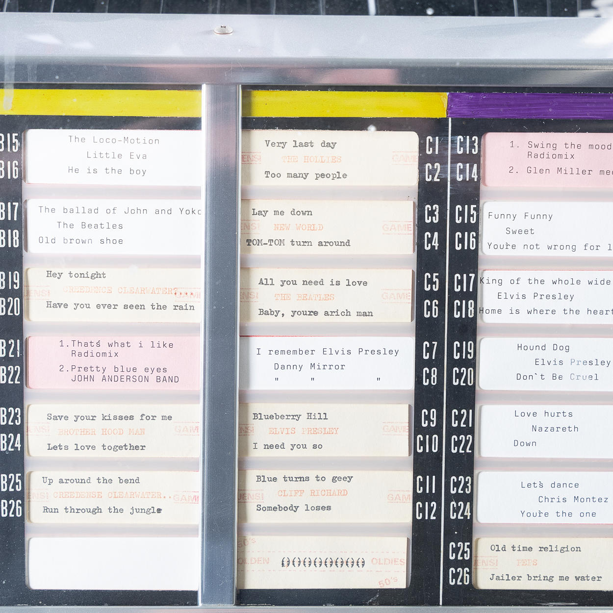 With records, various artists, including Elvis, Status Q, etc., height ca 136, 90 x 70 cm.