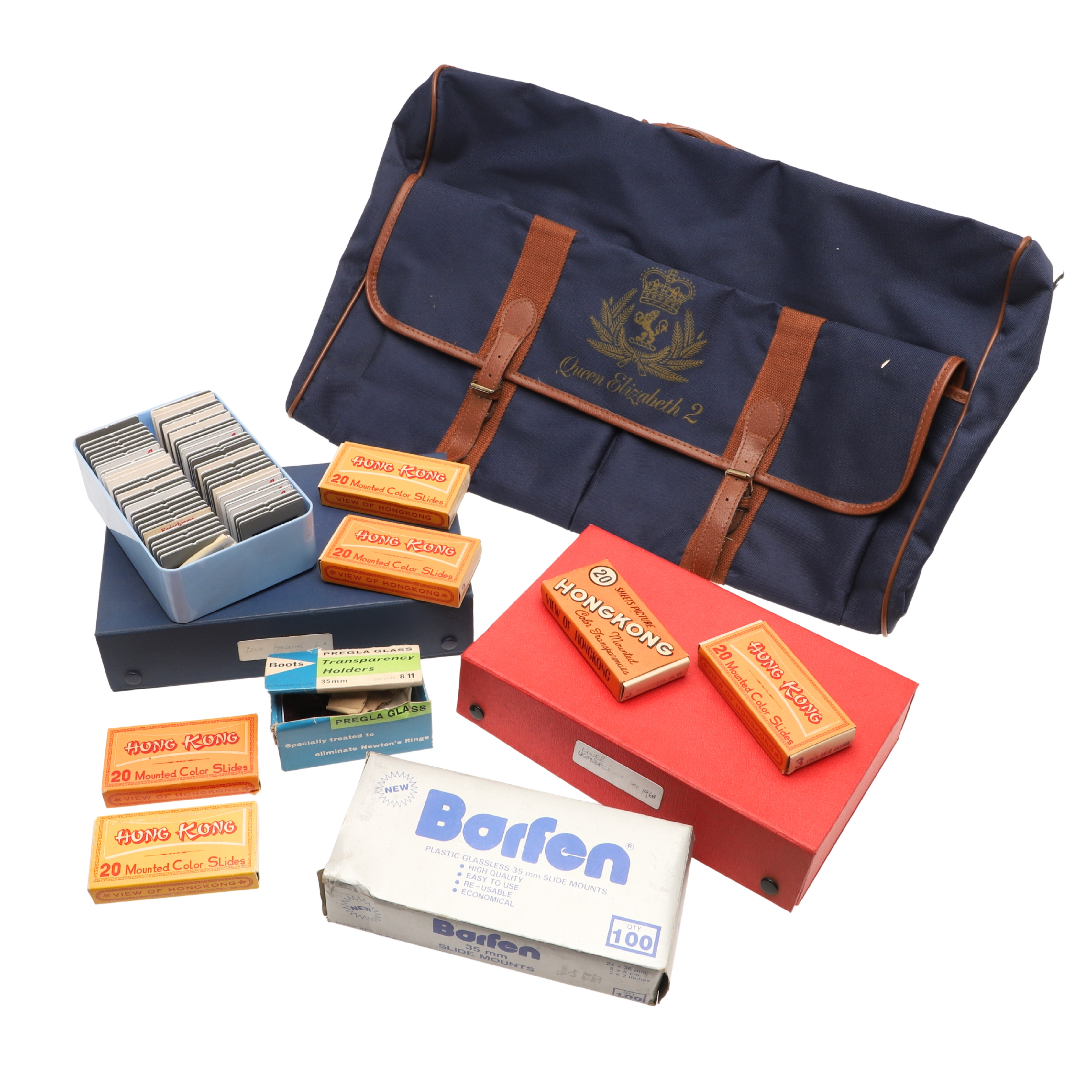 4365294. A COLLECTION OF COLOUR PHOTO SLIDES TO INCLUDE THE APOLLO 11 MOON LANDING AND A QUEEN ELIZABETH II CRUISE LINER HOLDALL.
