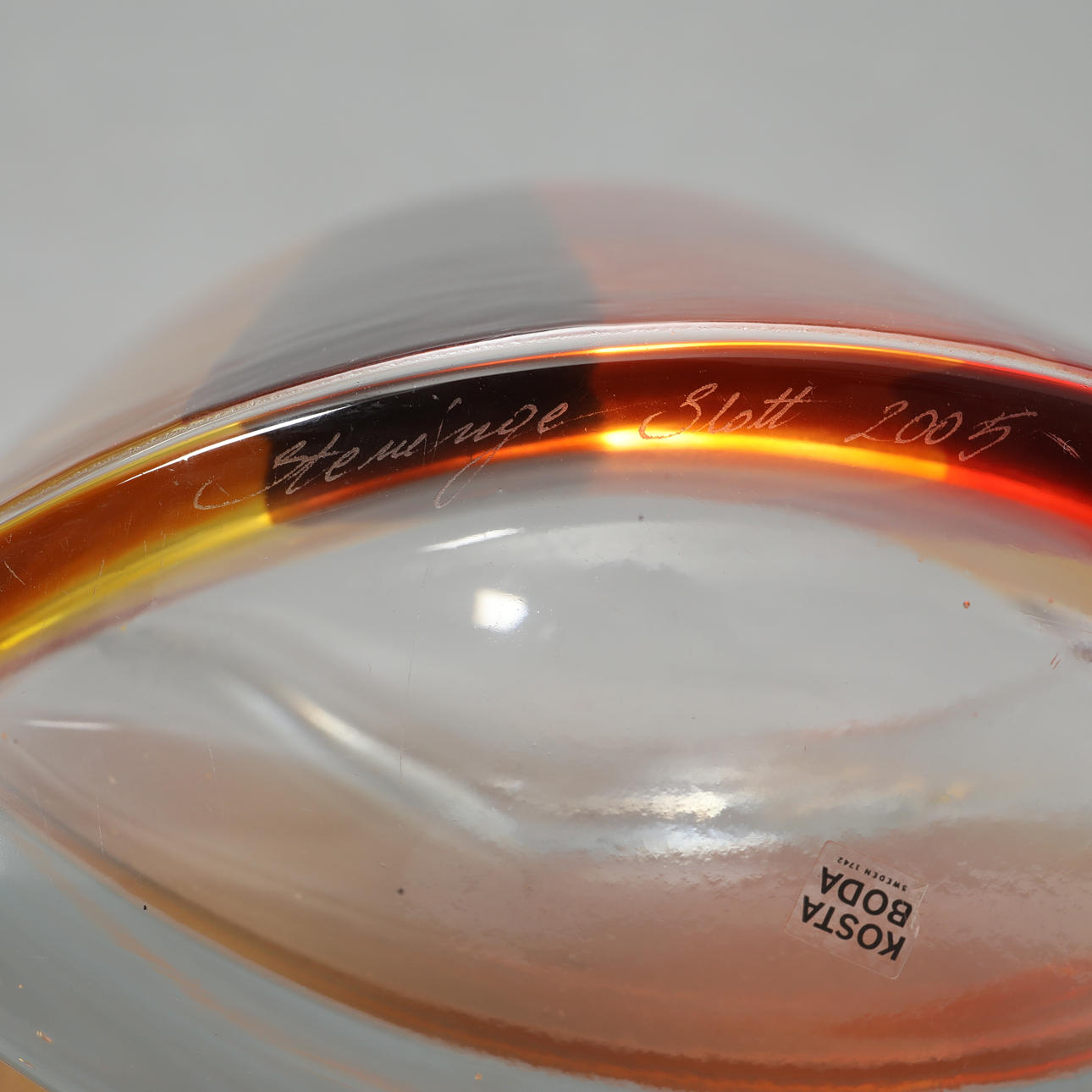 4365311. A glass vase signed Steninge Slott 2005.