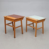 Frame in birch. Folding worktop coated with laminate. Length ca 65, width 55, height 66-74,5 cm.