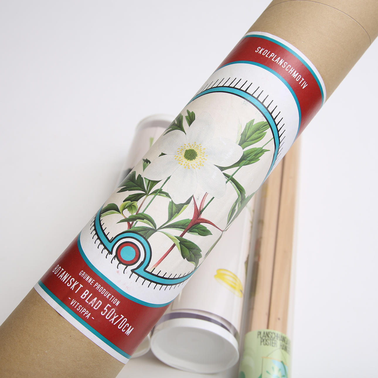 1 pc School plan, Grunne Produktion Botanical leaf, 50 x70 cm, “Vitsippa”