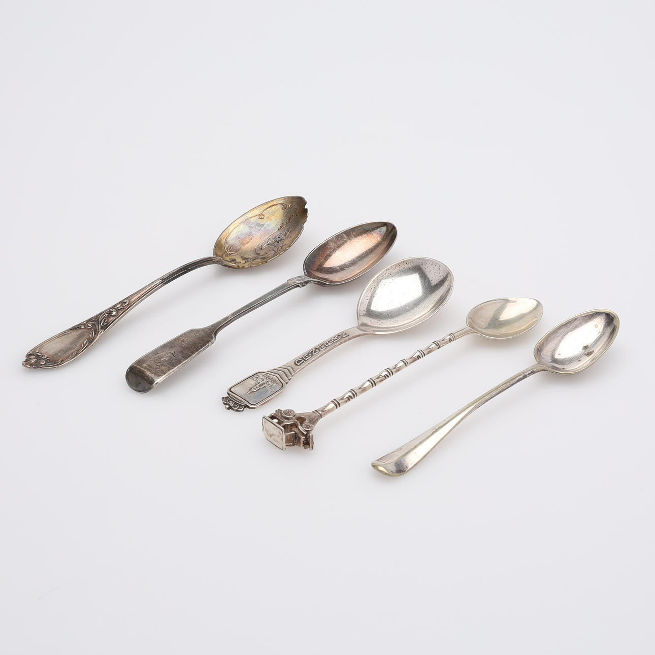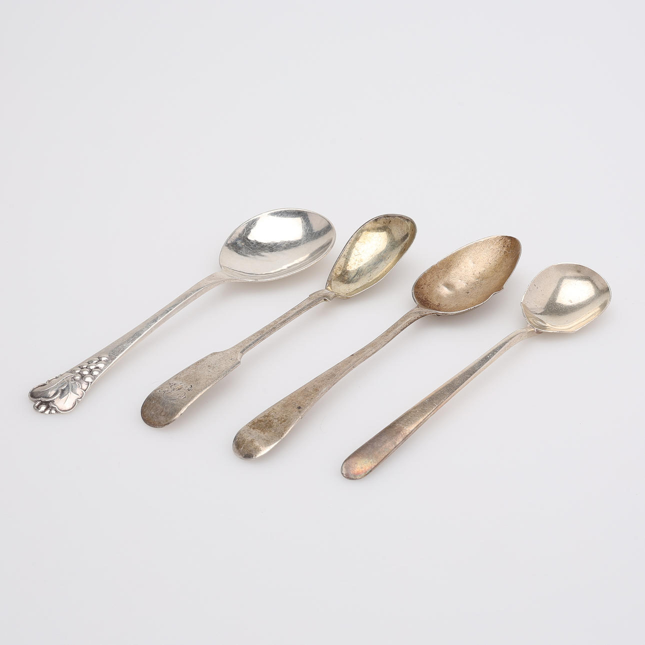 Length 5-22.5 cm. Most 925-silver. Including salt spoons, coffee spoons, teaspoons and berry spoons.
