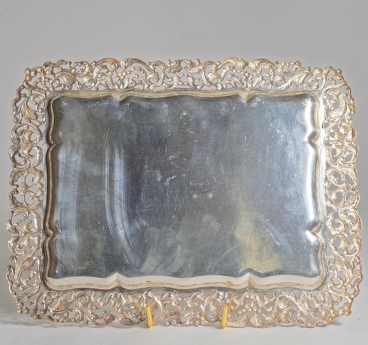 4366446. DESK TRAY. WITH PERIMETER BORDER. SILVER METAL.