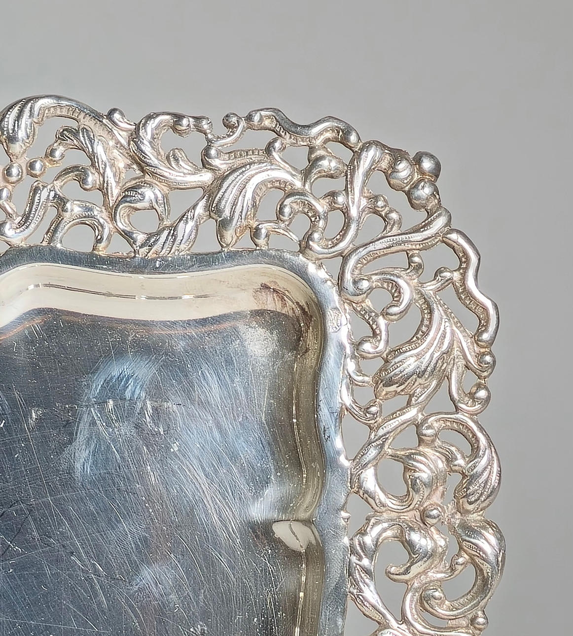 DESK TRAY. WITH PERIMETER BORDER. SILVER METAL.