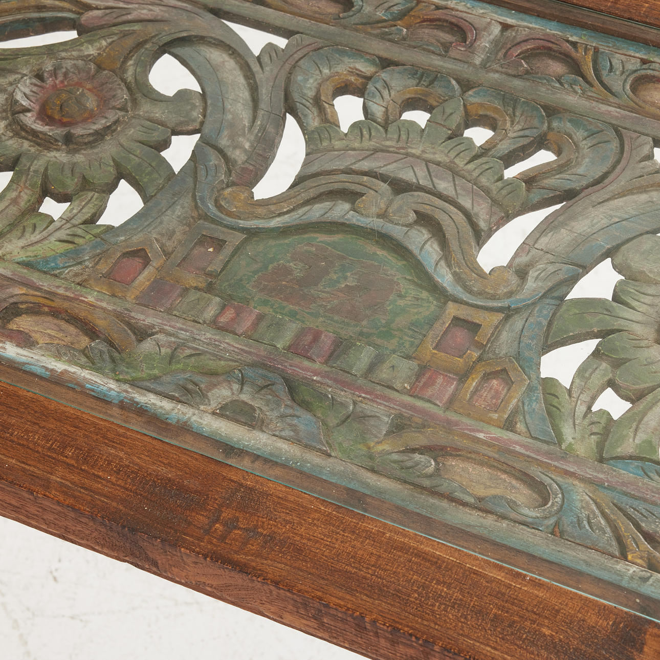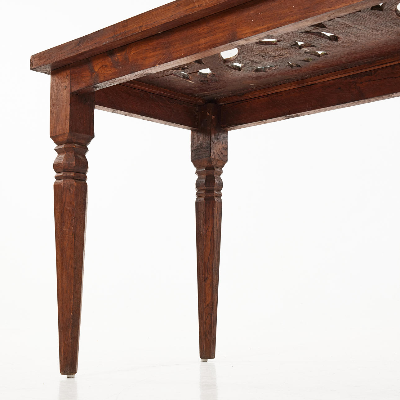 Normal wear and tear, wood cracks, marks.