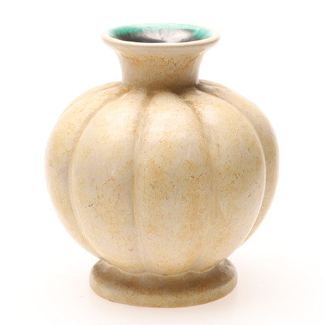 Anna-Lisa Thomson, a globe vase, glazed earthenware decorated in stripes in relief, S:t Erik's earthenware factory, height 16 cm.