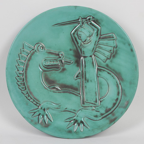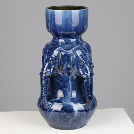 Gertrud Löngren, a globe vase, glazed earthenware, decorated with fish and sea plants, S:t Erik's earthenware factory, height 12,5 cm.